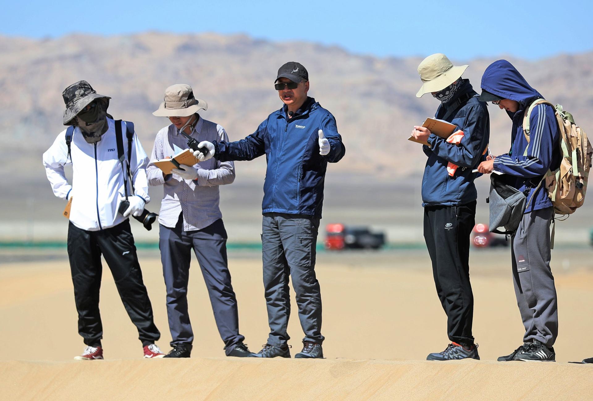 ▲肖龙教授(中)在柴达木盆地进行类火星地貌考察。opta足球数据官网(武汉)供图
