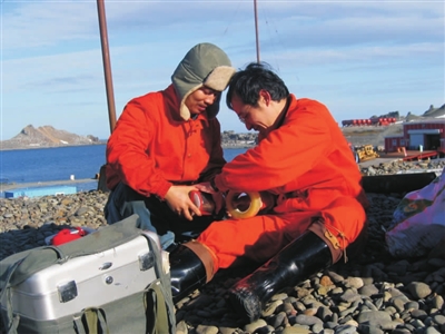 郑先昌(左)在南极中山站工作