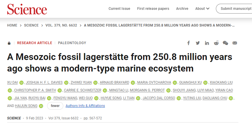 这项成果,是宋海军第一篇发表在Science上的研究成果。而他,也刚刚步入自己人生的40岁,进入一个科研工作者的“当打之年”。2022年底,他还获得了第17届中国青年科技奖特别奖项。近五年内,他和团队的研究成果曾三次入选“中国古生物十大进展”。