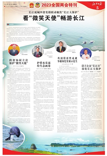 保护长江江豚,更是为了抓好长江大保护。全国两会期间,江西日报联合新华日报、安徽日报、湖北日报,把镜头对准一头头游弋于长江的“微笑天使”,追寻它们溯江而上的轨迹,感受它们尽情撒欢的惬意,并连线四省代表委员,共同畅谈流域内为保护长江、留住“微笑”付出的努力。