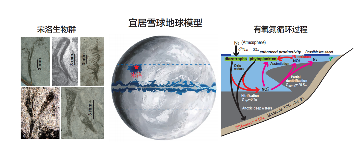 依据相关研究恢复的成冰纪全球古地理图,“宋洛生物群”所在的宋洛剖面位于北半球中纬度地区,综合古生物化石和地球化学证据,研究人员对此前的“雪球地球”模型进行修订,提出了一个中低纬度地区同时存在开阔海水环境的新“雪球地球”模型,扩张的有氧开阔水域为成冰纪需氧底栖宏体藻类的演化提供了宜居环境。