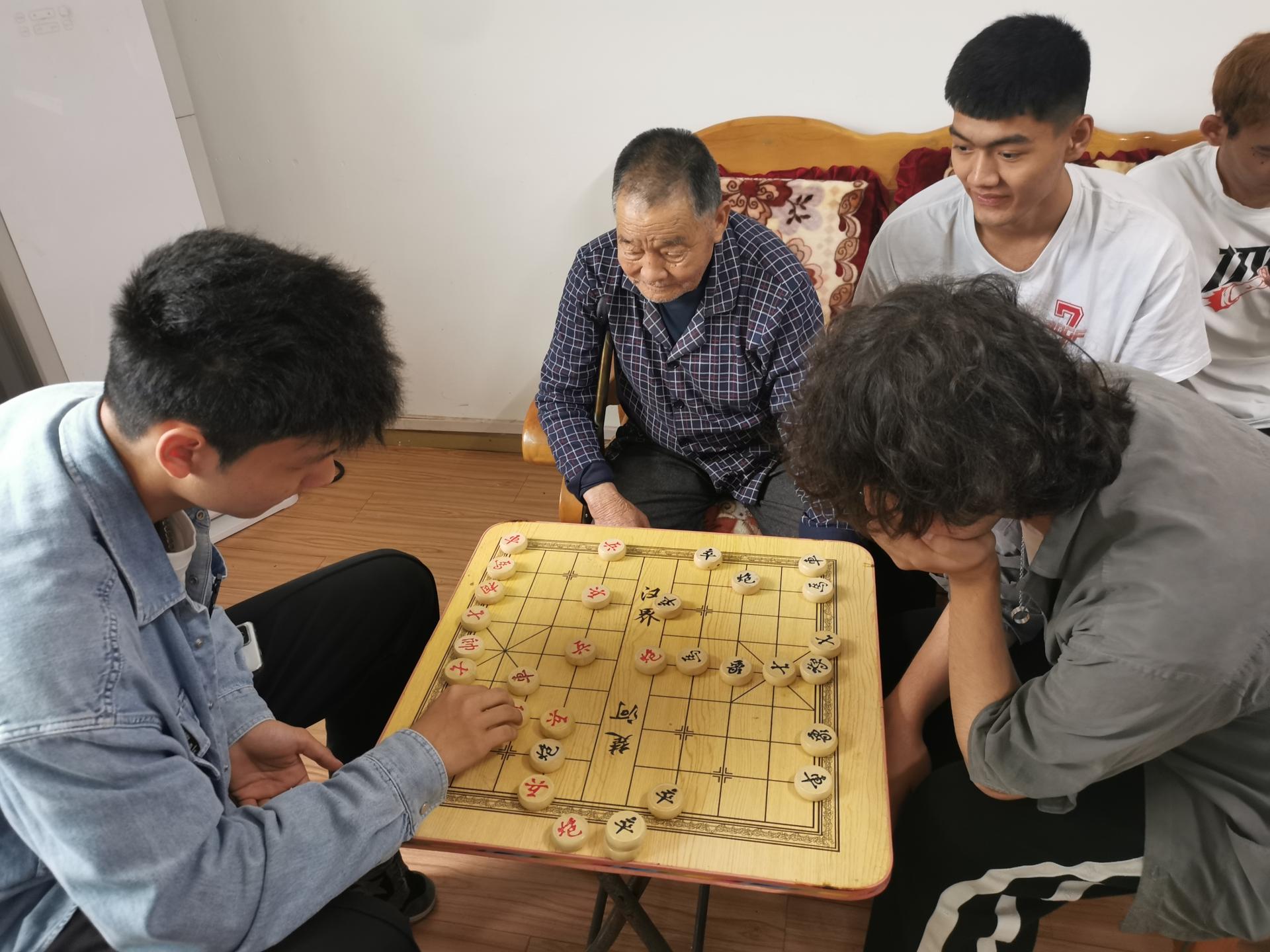 同学们亲热地围坐在老人们的身边,与老人们进行交流谈心,并和老人一起下棋。“要吃得了苦,多为祖国建设做贡献。”老人们嘱咐同学们要珍惜现在来之不易的生活,在和平年代也要发扬吃苦精神,多做贡献。