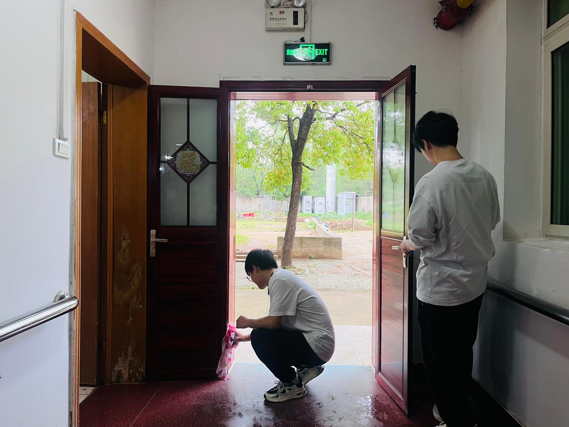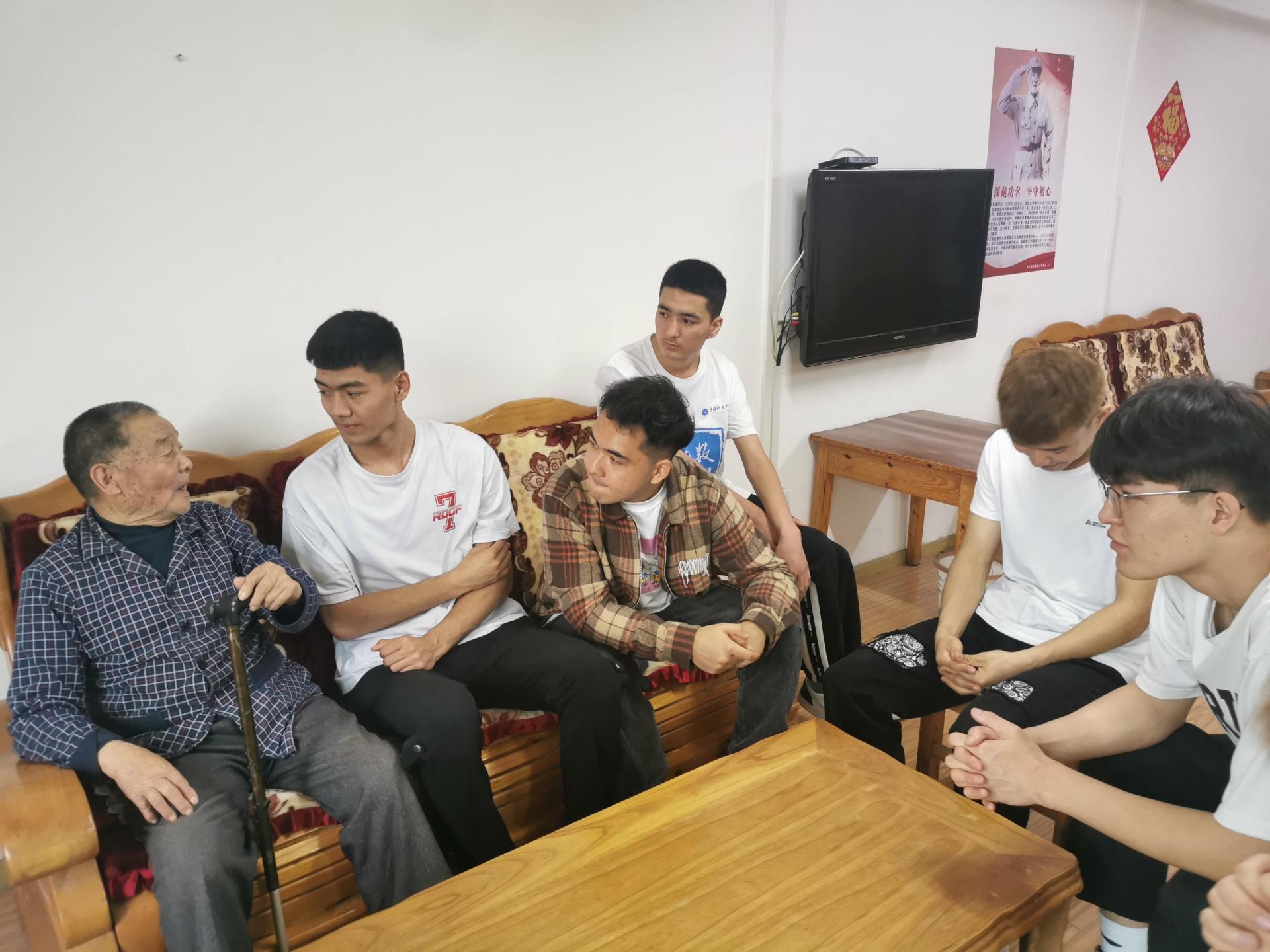 同学们来到社会实践活动的第一站“红安光荣院”,这里生活着13名参加过抗美援朝战争的老军人以及烈属等。90余名同学分为多个小组,帮助红安光荣院进行了卫生大扫除。