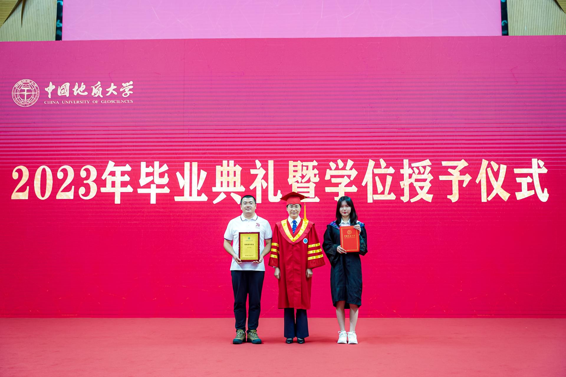 欧阳永棚分享了十年一线地质工作的心得体会;叮嘱毕业生们要坚持学习,不断积累,规划好工作目标;要坚定信念,坚守初心,踏实做好每件事,努力成为堪当大任的栋梁之才。校党委书记黄晓玫向欧阳永棚颁发“优秀青年校友”荣誉证书。