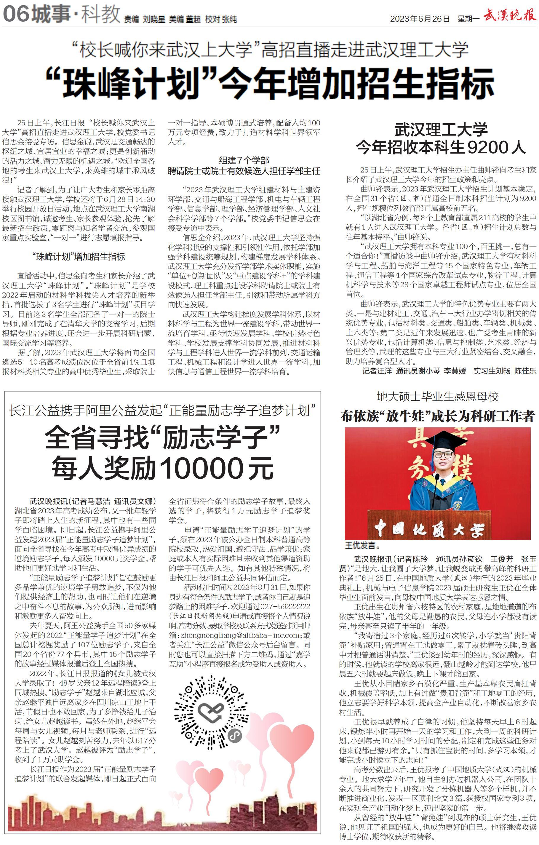 《武汉晚报》6月26日 第6版:城事·科教