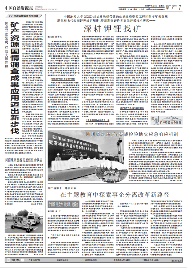 刘成林不仅专注科学研究和服务社会,更注重钾盐找矿人才培养。为此,他开办了一个线上“钾盐专家速成班”,每周六讲一次课,以满足快速培训相关人才、服务钾盐科研与找矿实践的迫切需要。他说,当前要加强紧缺资源能源的成矿科学理论研究与勘查技术创新,指导新的找矿突破。目前,我国已在很多盐湖地层中发现了大量的低品位钾资源,加强低品位资源的高效开发技术研究,可以解决矿山的后备资源问题,实现钾盐矿山的可持续发展。同时,还要加强盐湖资源绿色交叉学科建设,大力培养相关技术人才,有效服务国家战略需求。