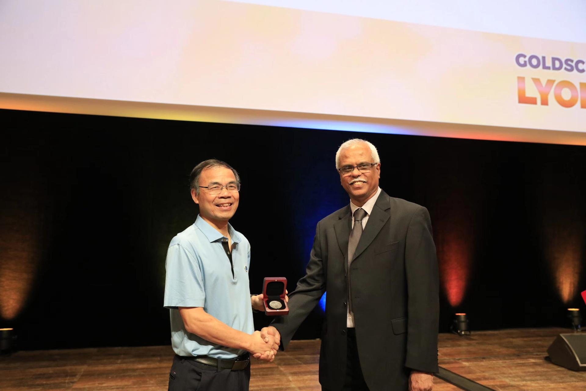 国际地球化学学会主席向谢树成院士颁发奖章