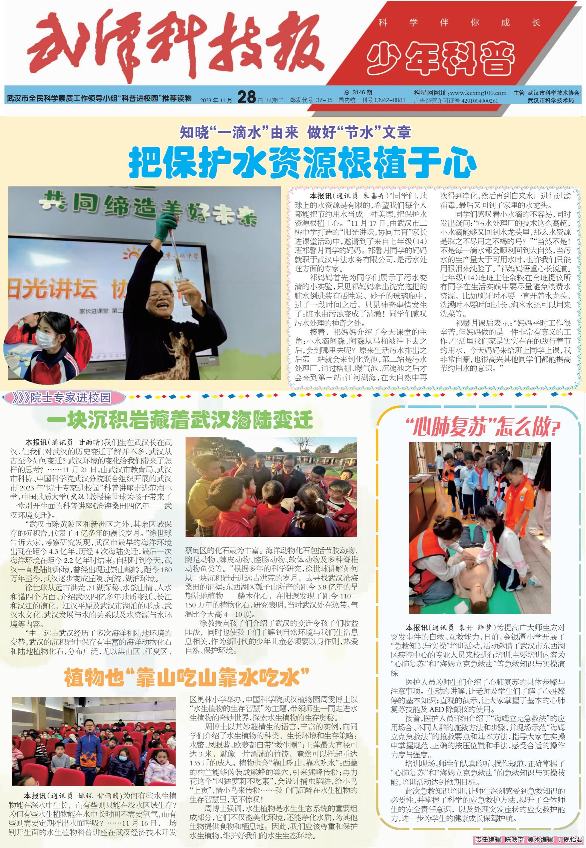 本报讯(通讯员 甘雨晴)我们生在武汉长在武汉,但我们对武汉的历史变迁了解并不多,武汉从古至今如何变迁?武汉环境的变化给我们带来了怎样的思考?……11月21日,由武汉市教育局、武汉市科协、中国科学院武汉分院联合组织开展的武汉市2023年“院士专家进校园”科普讲座走进范湖小学,opta足球数据官网(武汉)教授徐世球为孩子带来了一堂别开生面的科普讲座《沧海桑田四亿年——武汉环境变迁》。