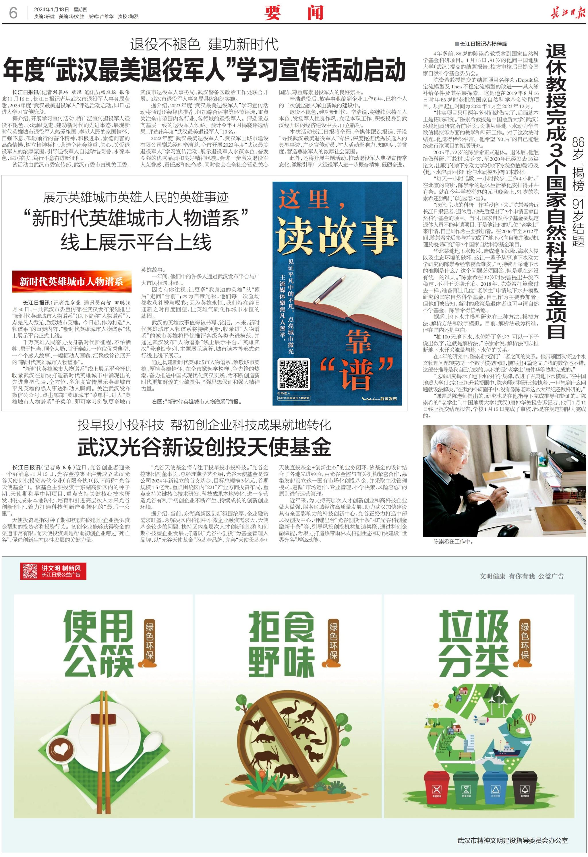 链接:长江日报 - 退休教授完成3个国家自然科学基金项目 (cjn.cn)