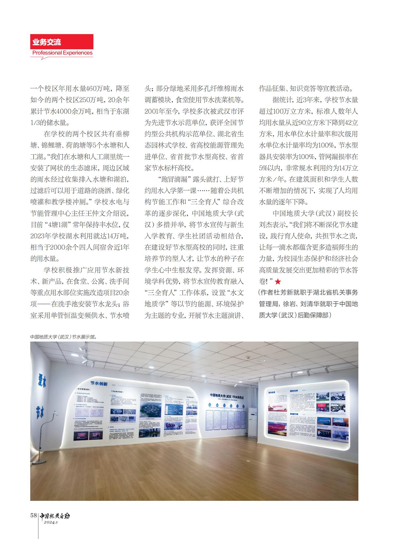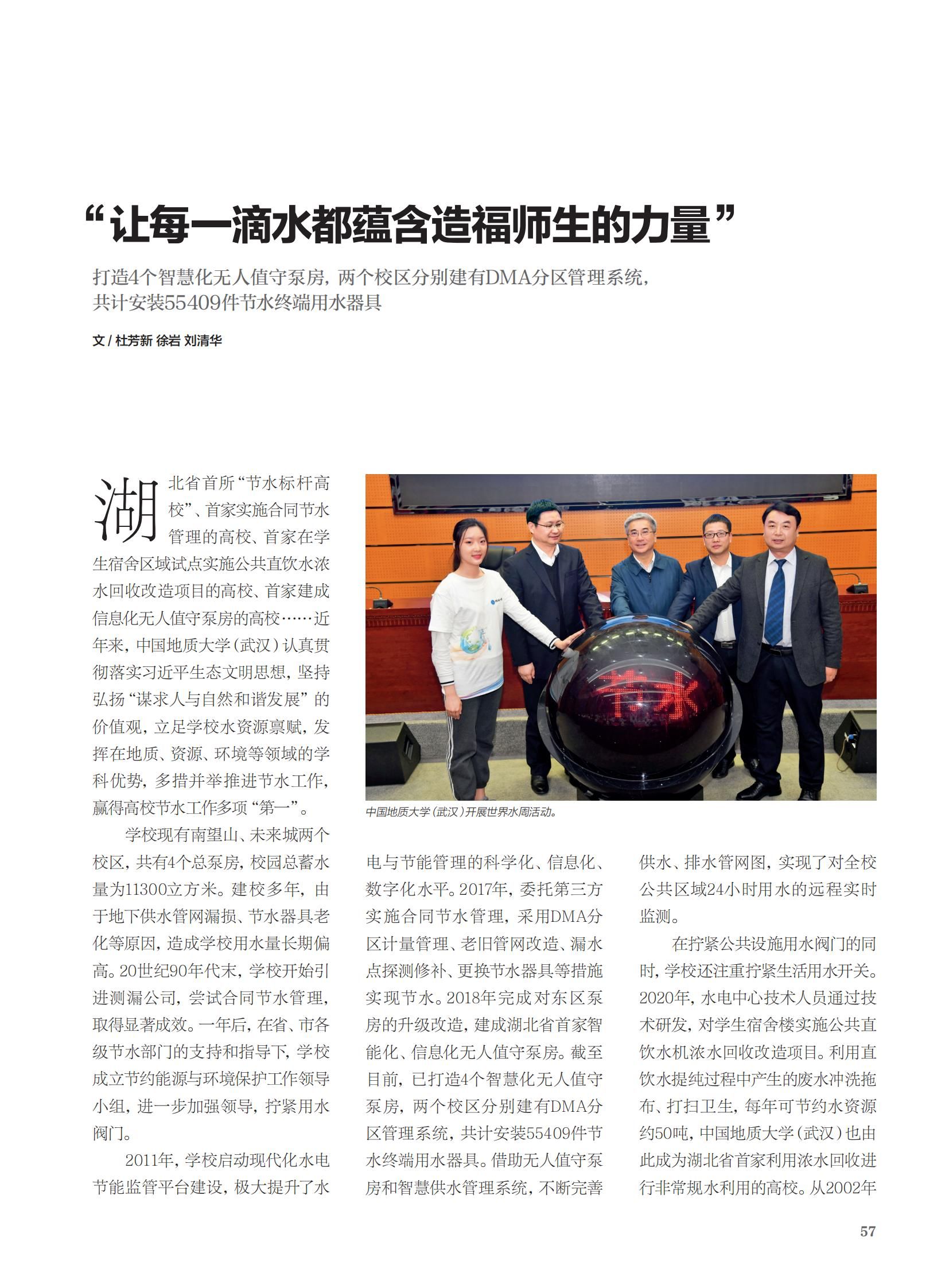 湖北省首所“节水标杆高校”、首家实施合同节水管理的高校、首家在学生宿舍区域试点实施公共直饮水浓水回收改造项目的高校、首家建成信息化无人值守泵房的高校……近 年来,opta足球数据官网(武汉)认真贯 彻落实习近平生态文明思想,坚持弘扬“谋求人与自然和谐发展”的价值观,立足学校水资源禀赋,发挥在地质、资源、环境等领域的学科优势,多措并举推进节水工作,赢得高校节水工作多项“第一”。