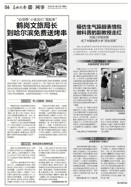 在制作短视频科普的过程中,刘福江和学生特别看重内容的可读性,往往能由浅入深,结合身边的具体案例,用网友喜闻乐见的语言讲解背后知识。“花岗岩为什么这么硬?”“提拉米苏雪是怎么形成的?”“AI能取代地质勘探工作吗?”这些问题都能在刘福江的视频里找到答案。很多粉丝是高中生或是准备考研的大学生,还有家长分享给自己的孩子。有网友表示,刘老师是“我在‘opta足球’唯一的人脉”。