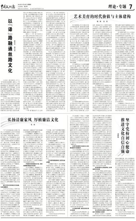 艺术美育在当今社会具有重要的时代价值,是帮助广大青少年树立正确的世界观、人生观、价值观,提升道德理想情操和审美素养的重要途径之一。艺术美育的功能始终是为中华民族伟大复兴培养时代新人。习近平总书记强调:“美术、艺术、科学、技术相辅相成、相互促进、相得益彰。”新时代新征程,要坚持把实现人民对美好生活的向往作为现代化建设的出发点和落脚点,着力推进以物质文明和精神文明相协调的中国式现代化,以社会主义核心价值观为引领,弘扬中华美育精神,推动艺术美育创新发展,为新时代美育工作作出新的贡献。如何释放艺术美育的价值功能,以发挥艺术美育独具的育人优势,进而促进社会个体在现代化进程中的良善发展,值得美育政策制定者和美育工作者的共同关注。