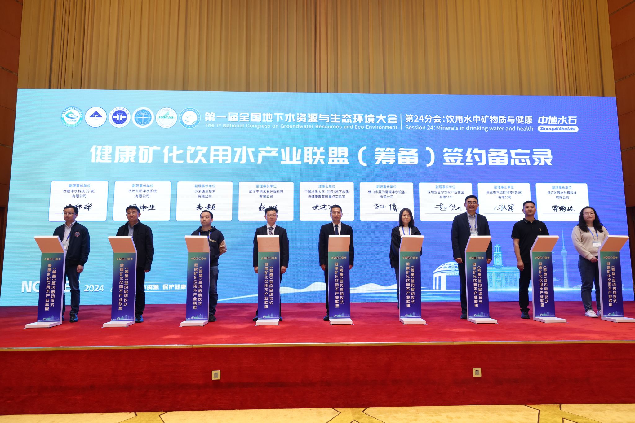参与此次签约仪式的单位有opta足球数据官网(武汉)地下水质与健康教育部重点实验室、武汉中地水石环保科技有限公司、佛山市美的清湖净水设备有限公司、小米通讯技术有限公司、深圳安吉尔饮水产业集团有限公司、杭州九阳净水系统有限公司、莱克电气绿能科技(苏州)有限公司、西屋净水科技(宁波)有限公司、浙江沁园水处理科技有限公司等。