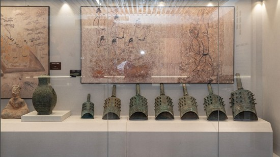 山西师范大学戏曲博物馆《曾侯乙编钟-复制品》。曾侯乙编钟是战国早期曾国国君的一套大型礼乐重器,1978年在湖北随县(今随州)擂鼓墩曾侯乙墓出土,原品现藏于湖北省博物馆。山西师范大学 禹成炎/摄