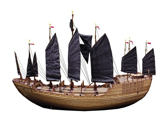 这艘船的原型是当年郑和下西洋舰队中最大的一艘船,包含九桅十二帆,是我国古代船舶建造水平的巅峰。武汉理工大学供图