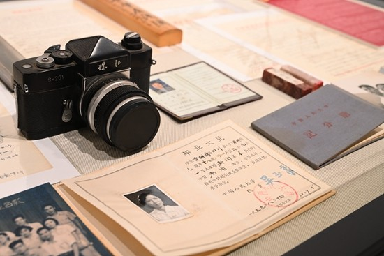 中国人民大学博物馆常设展览“尺翰之美——中国传统家书展”,此展品为1956级新闻系校友的采访相机、毕业证、家书等。中国人民大学供图