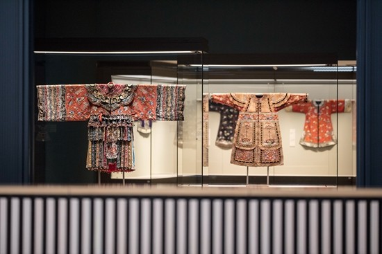 清华藏珍·丝绣华章织绣展:清代缎地彩绣舞衣、红地彩绣铠甲戏衣。清华大学供图