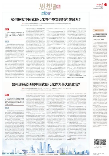 把中国式现代化作为最大的政治内涵丰富。追求中国特色社会主义伟大事业的目标导向、深厚的人民立场、展现现代化模式新图景,共同标注了中国式现代化这一“最大的政治”的思想聚焦。