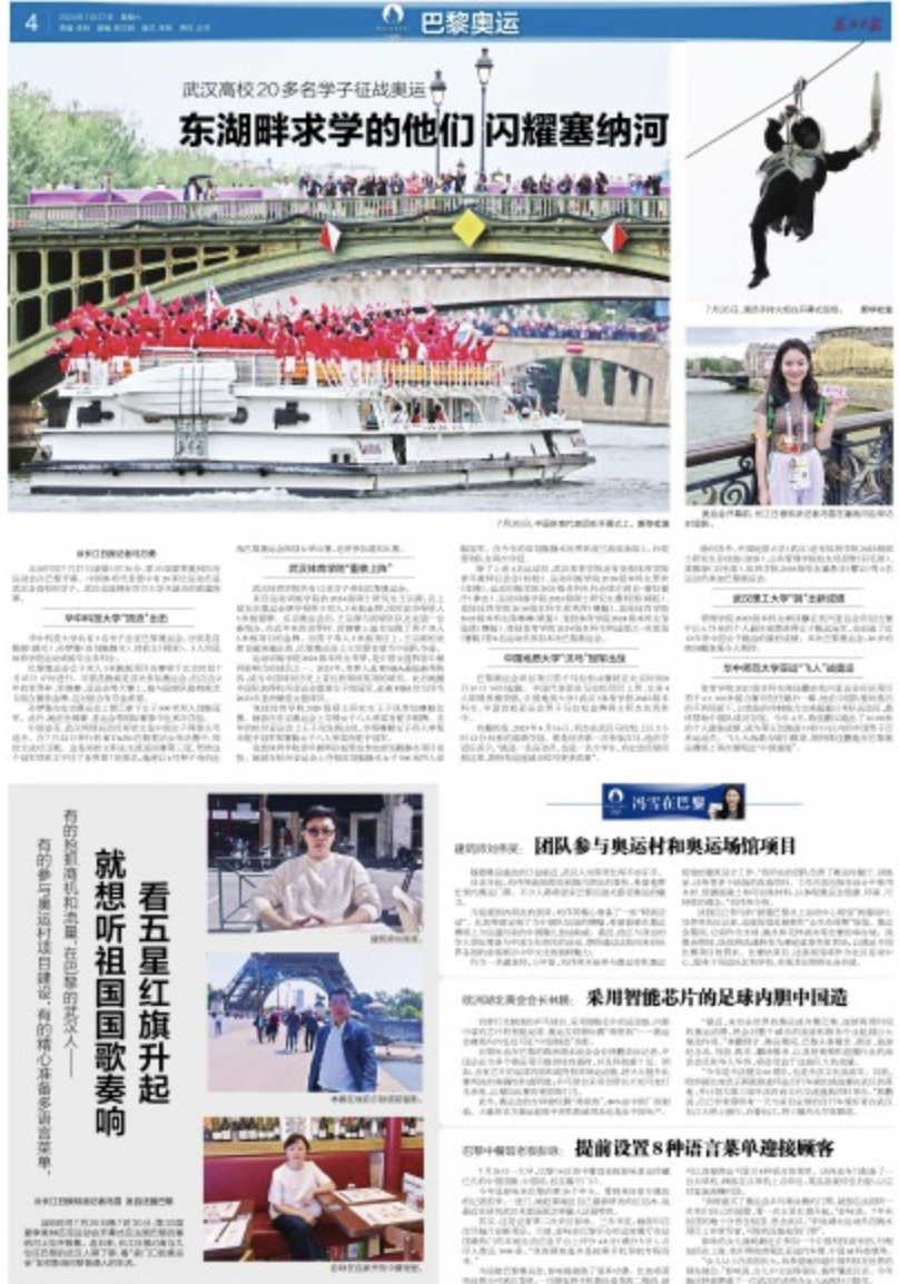北京时间7月27日凌晨1时30分,第33届夏季奥林匹克运动会在巴黎开幕。中国体育代表团中有20多位运动员是武汉各高校的学子。武汉这座拥有百万大学生城市的底蕴深厚。