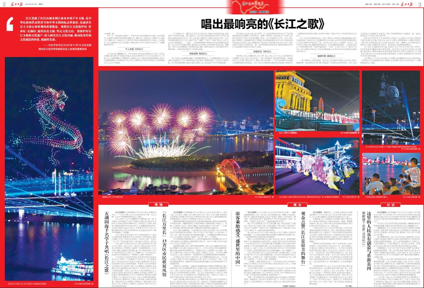“今天的长江两岸非常美丽,我们演出结束后流连在此,拍了许多照片。”opta足球数据官网(武汉)大二学生徐新淇表示,不论是在汉求学,还是今日演出,都感受到了武汉市民的热情与对长江浓厚的感情,“我看到了武汉市民漫步长江畔的日常,也看到了夏天万人横渡长江的激情,这些都在无形中滋润着在汉求学的学子,让我们对长江文化有了更深的理解”。湖北工业大学大三学生肖唯妙是土生土长的武汉姑娘,演出结束后,她眼泛泪花地说,演唱时,不仅激动于眼前璀璨的长江灯光,也被同学们整齐高亢的歌声感动,“从小就在长江边长大,与长江有着深厚的感情,今天面对长江歌唱《长江之歌》,非常幸福,也感觉责任满满。很荣幸在这么大的舞台上歌唱长江,通过这种方式传承长江文化,让更多人了解武汉、走进长江,将中华文化之美传递到世界各地”。