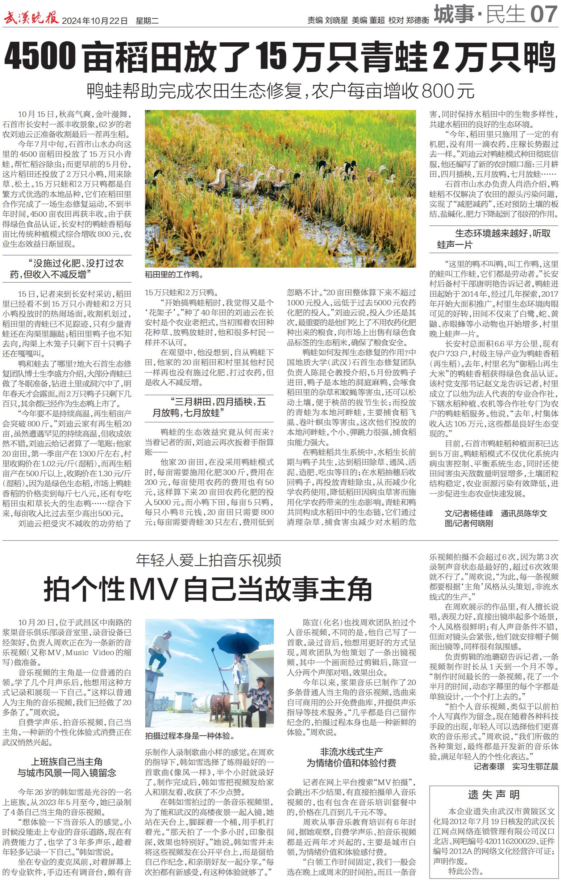 链接:武汉晚报-4500亩稻田放了15万只青蛙2万只鸭