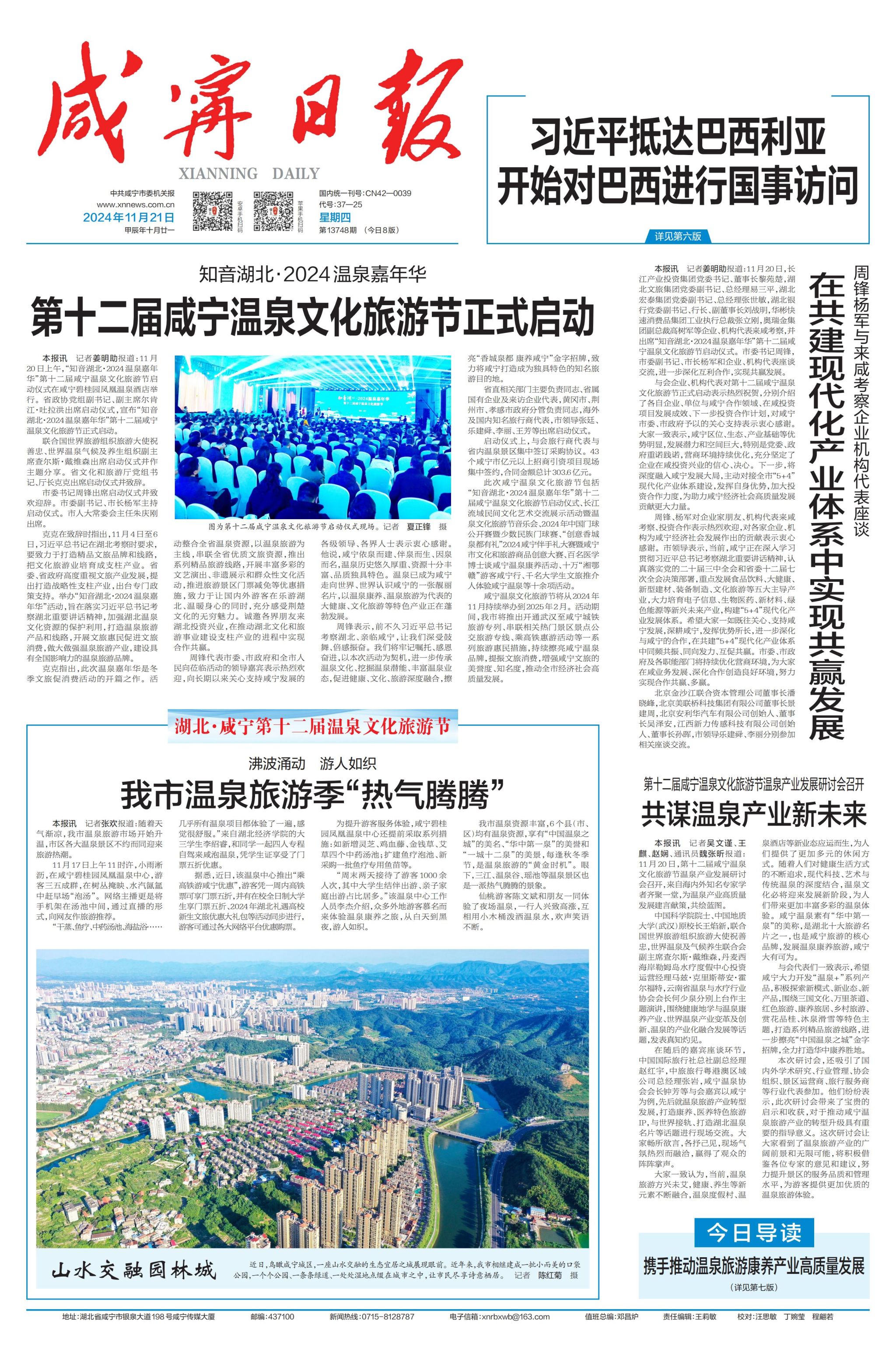 本报讯 记者吴文谨、王麒、赵娴、通讯员魏张昕报道:11月20日,第十二届咸宁温泉文化旅游节温泉产业发展研讨会召开,来自海内外知名专家学者齐聚一堂,为温泉产业高质量发展建言献策,共绘蓝图。