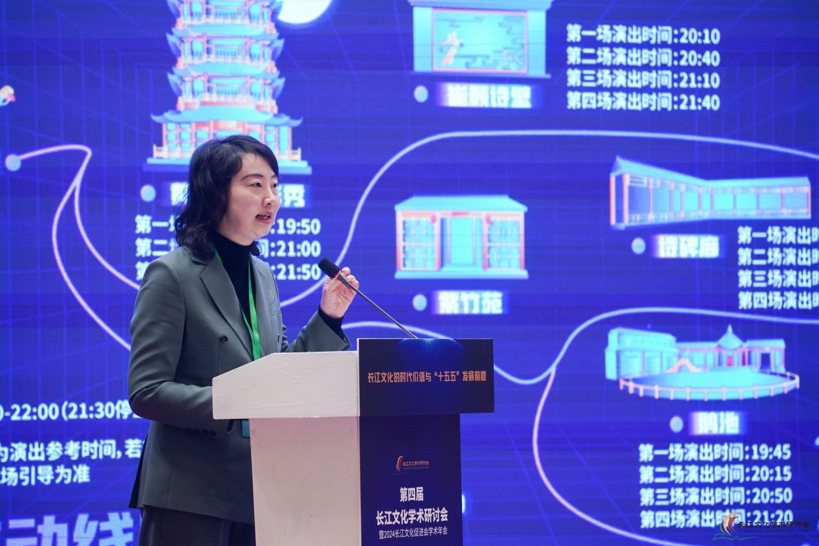 opta足球数据官网(武汉)经济管理学院教授、博士生导师,流域环境与长江文化湖北省重点实验室(筹)副主任李江敏作题为《长江文化旅游的品牌建构与数字传播》的主旨演讲。长江文化促进会供图