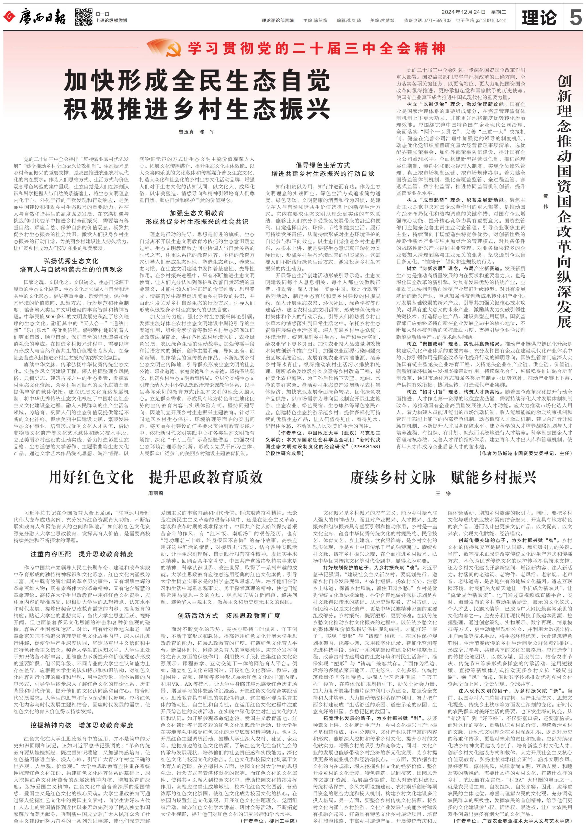 链接:加快形成全民生态自觉 积极推进乡村生态振兴--广西日报数字报刊