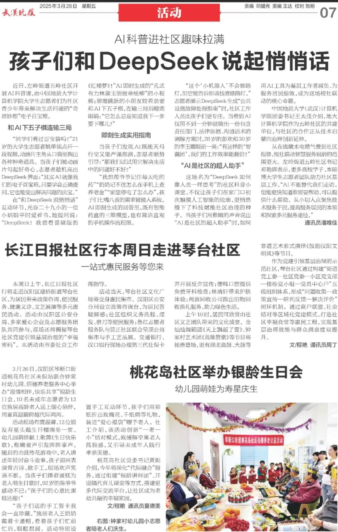 从在线缴水电燃气费到社区报修,校社联动智慧服务银龄的范围更大。左岭街道五岭社区书记邓艳群表示,更多高校学子、本硕博大学生志愿者团队助力社区基层工作,“AI不能替代我们走访,但能更快知道谁需要帮助、可以提供什么帮助。从小切入点聚焦技术服务于民,提高服务居民的本领和探索多元服务途径。”