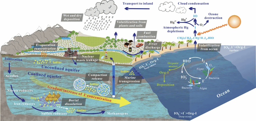 全球碘循环和地下水系统中碘富集的宏观水文地质过程。