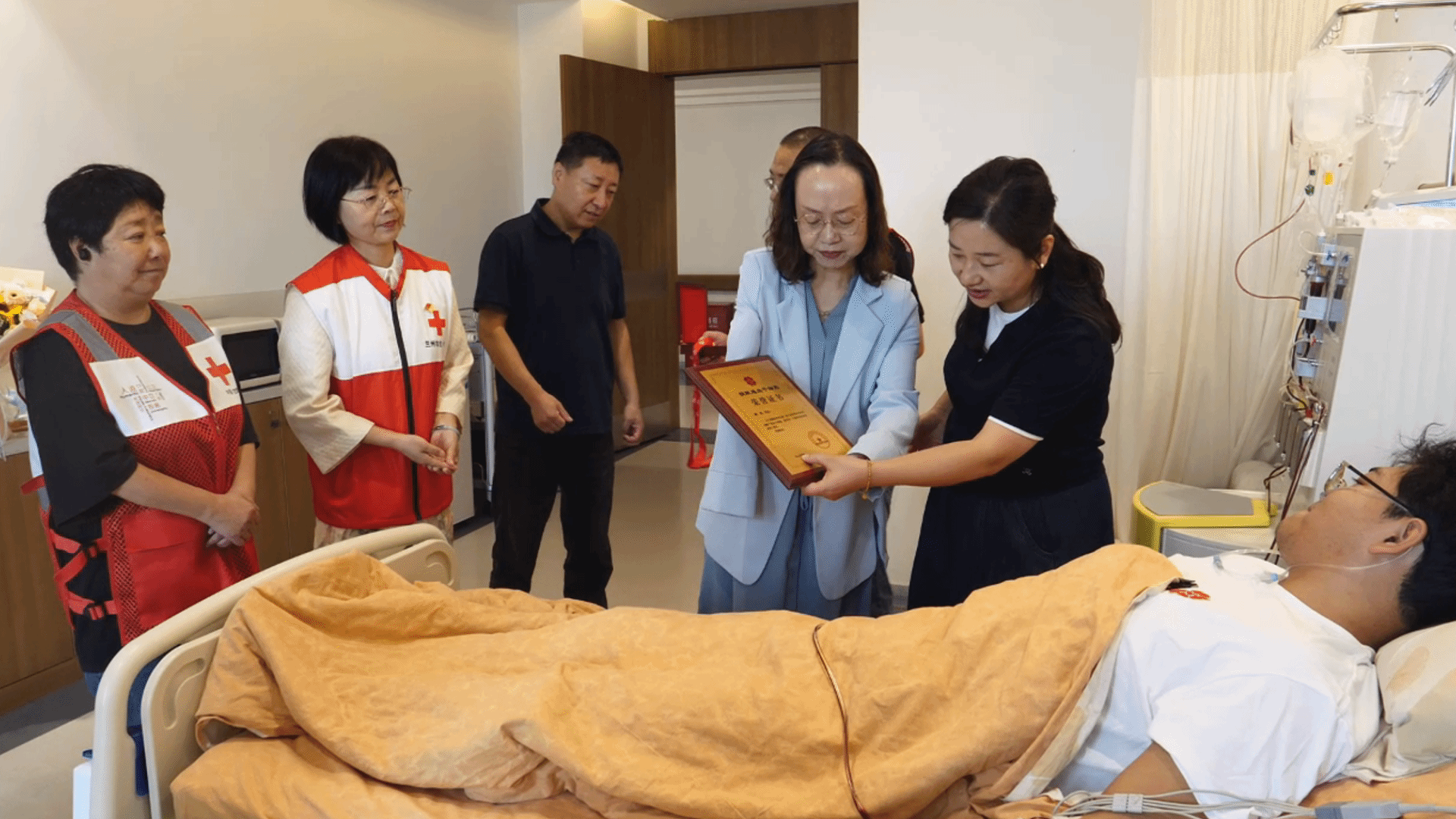 为他颁发“博爱金奖”奖牌和荣誉证书