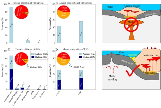 板块构造是地球区别于其他星球、具有蓬勃生命力的关键因素之一,也是寻找类地宜居行星的重要标志。破译地球早期地壳组成和形成的大地构造背景是回答板块构造启动时限及板块构造样式如何随时间推移而演变的关键;但由于后期地质作用的叠加不断破坏,造成冥古宙地壳岩石很难保存至今,给上述问题的解答带来了严峻挑战。碎屑锆石,作为冥古宙唯一具有精确定年的物质记录,为揭示其形成的构造-岩浆系统背景提供了关键窗口。虽然冥古宙碎屑锆石已在全球约15-20个地点被发现,但其中95%以上的锆石来自澳大利亚Yilgarn克拉通的Jack Hills地区。