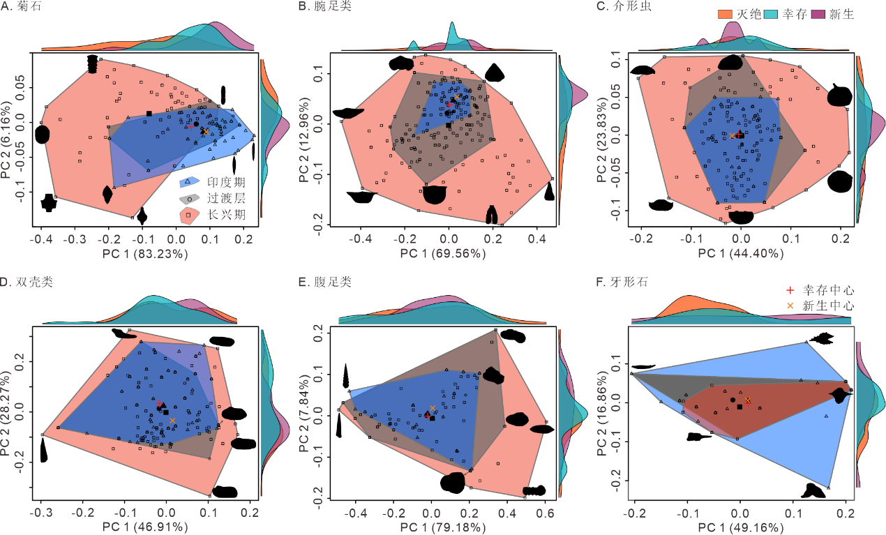 六个海洋生物门类在二叠纪—三叠纪大灭绝中形态空间的演变过程