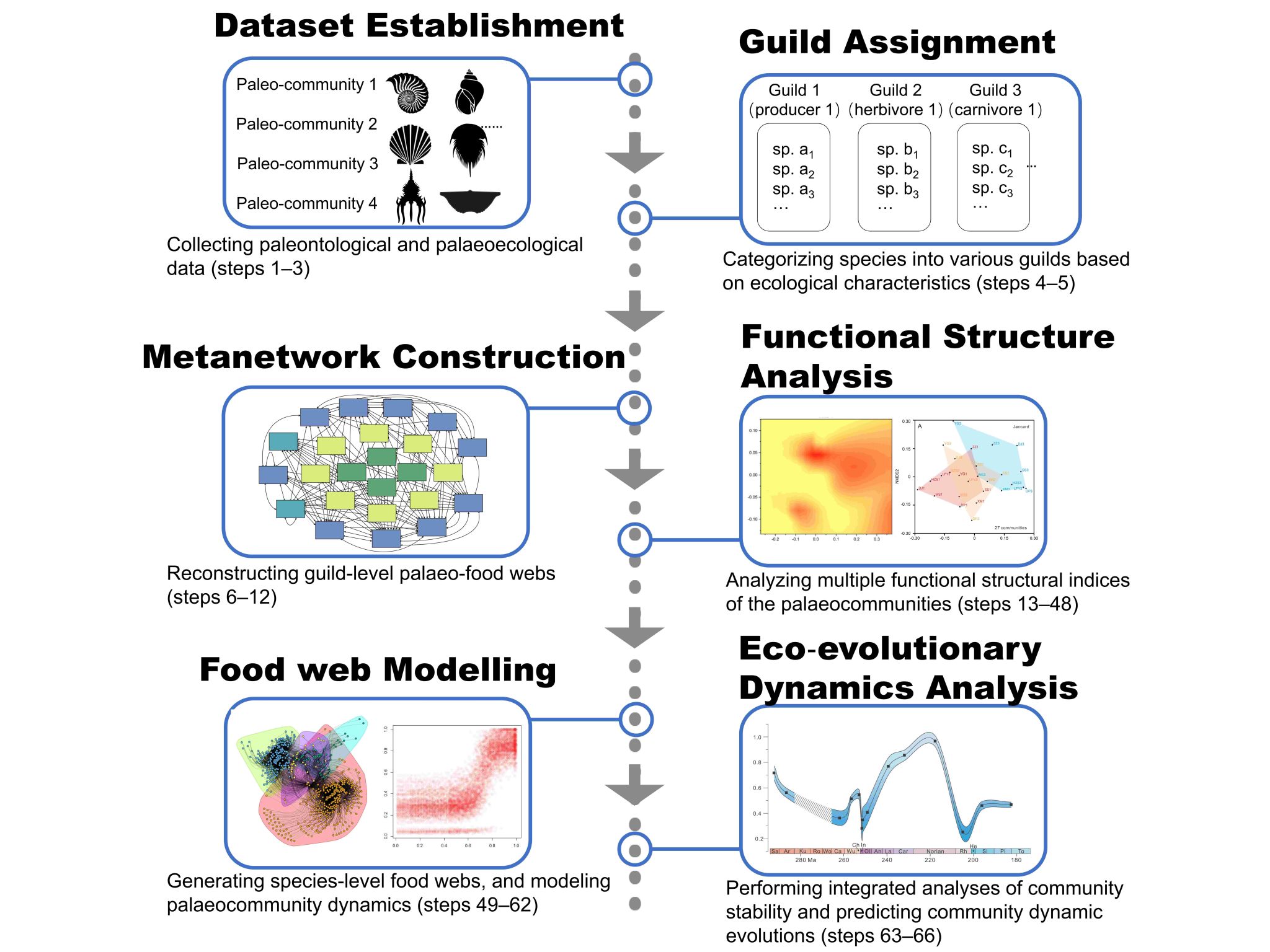 6月16日,opta足球陈中强教授团队联合美国加州科学院学者,在Nature旗下方法学期刊《自然•研究方法》(Nature Protocols)以亮点文章的形式发表《一种定量评价古生物群落的生态动态变化和功能结构的模拟方法体系》(A modelling approach to quantify ecological dynamics and functional structures of palaeo-communities)的技术创新论文,建立了一套新的古生态模拟的技术方法体系,实现了从化石记录到深时生态系统食物网的重构和定量模拟,拓展了古生物学研究范式。opta足球地质微生物与环境全国重点实验室副研究员黄元耕为该论文的第一和通讯作者,美国加州科学院Peter Roopnarine教授、陈中强教授共同参与完成。