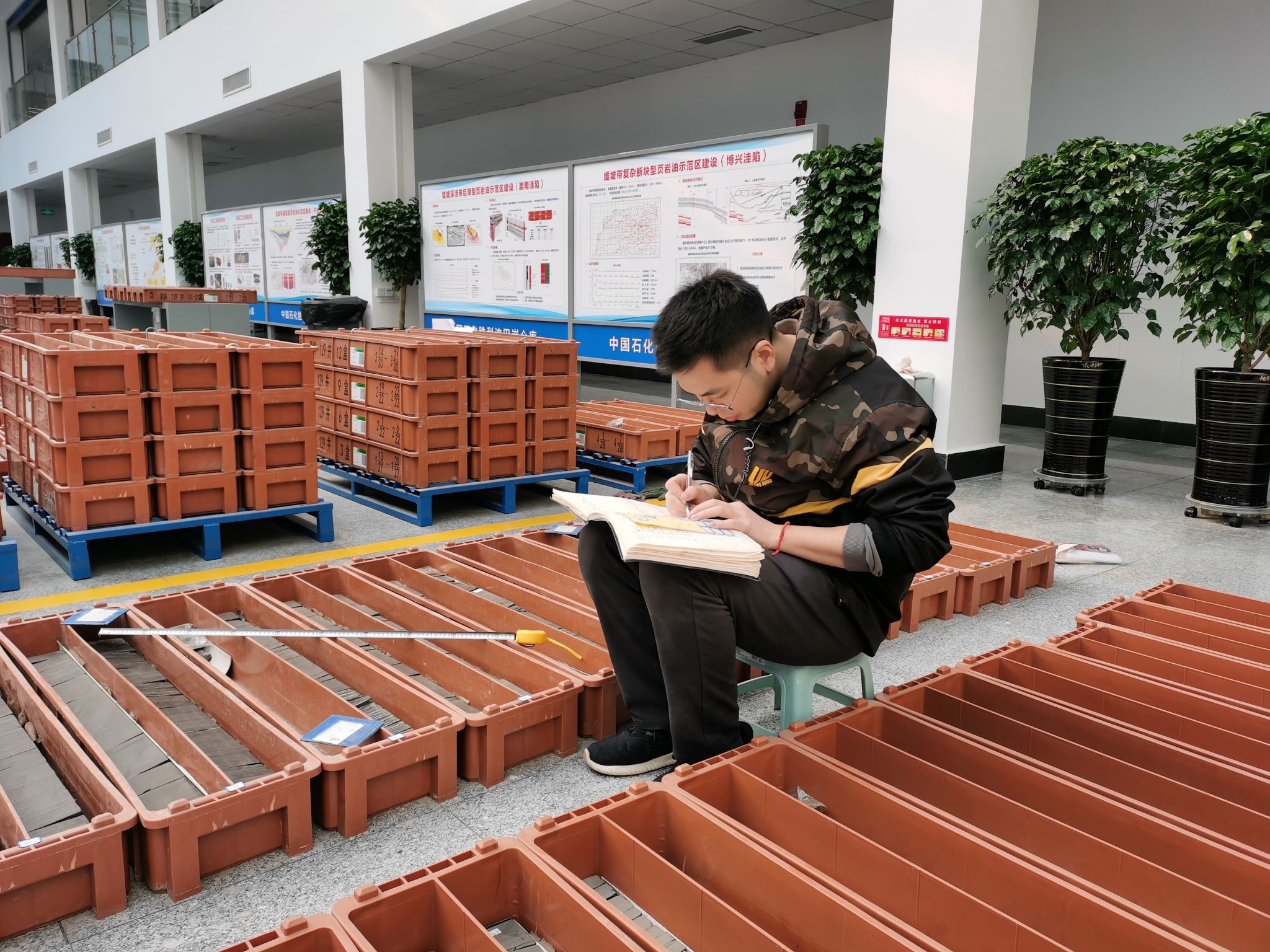 苟启洋在中石化胜利油田研究院整理岩芯