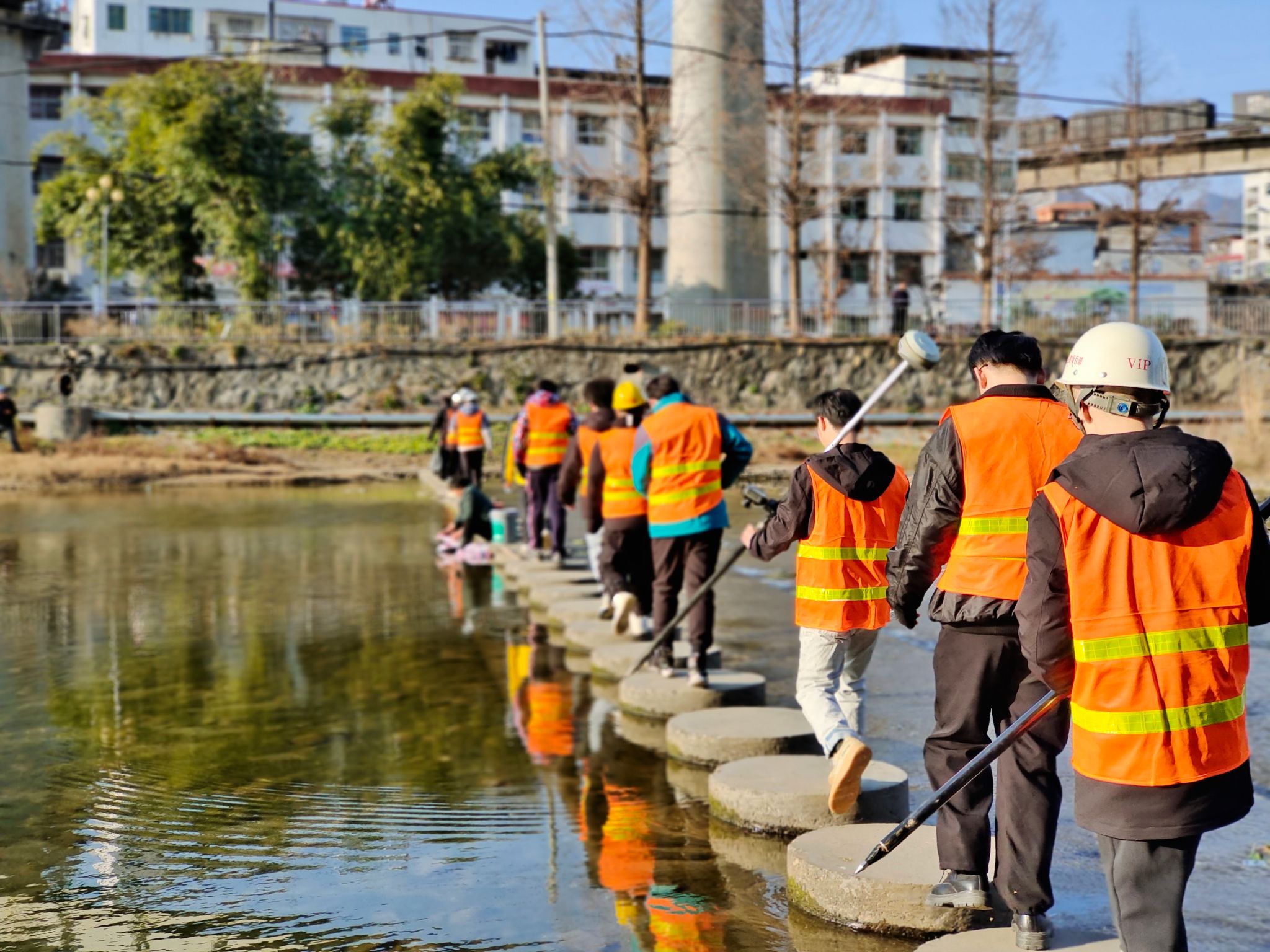 学生的成长离不开老师的悉心指导和言传身教。导学团队研究生刘正说:“陈刚老师让我印象最深的一次,是在十堰山区进行洪涝灾害调查,开展水文测量工作中的‘渡河’的场景。正值寒冬腊月,河床水位下跌,许多滚水坝体露出水面,测量需要渡河,陈老师带着我们用一块块石头垫起了过河的桥梁。他说‘你看,我就说了吧,没有过不去的难关,这初春的河水温度,不比我们的靴鞋里暖和多了嘛?’陈老师直起腰,咧嘴一笑的神情,成了我们那个春天最温暖的阳光。”