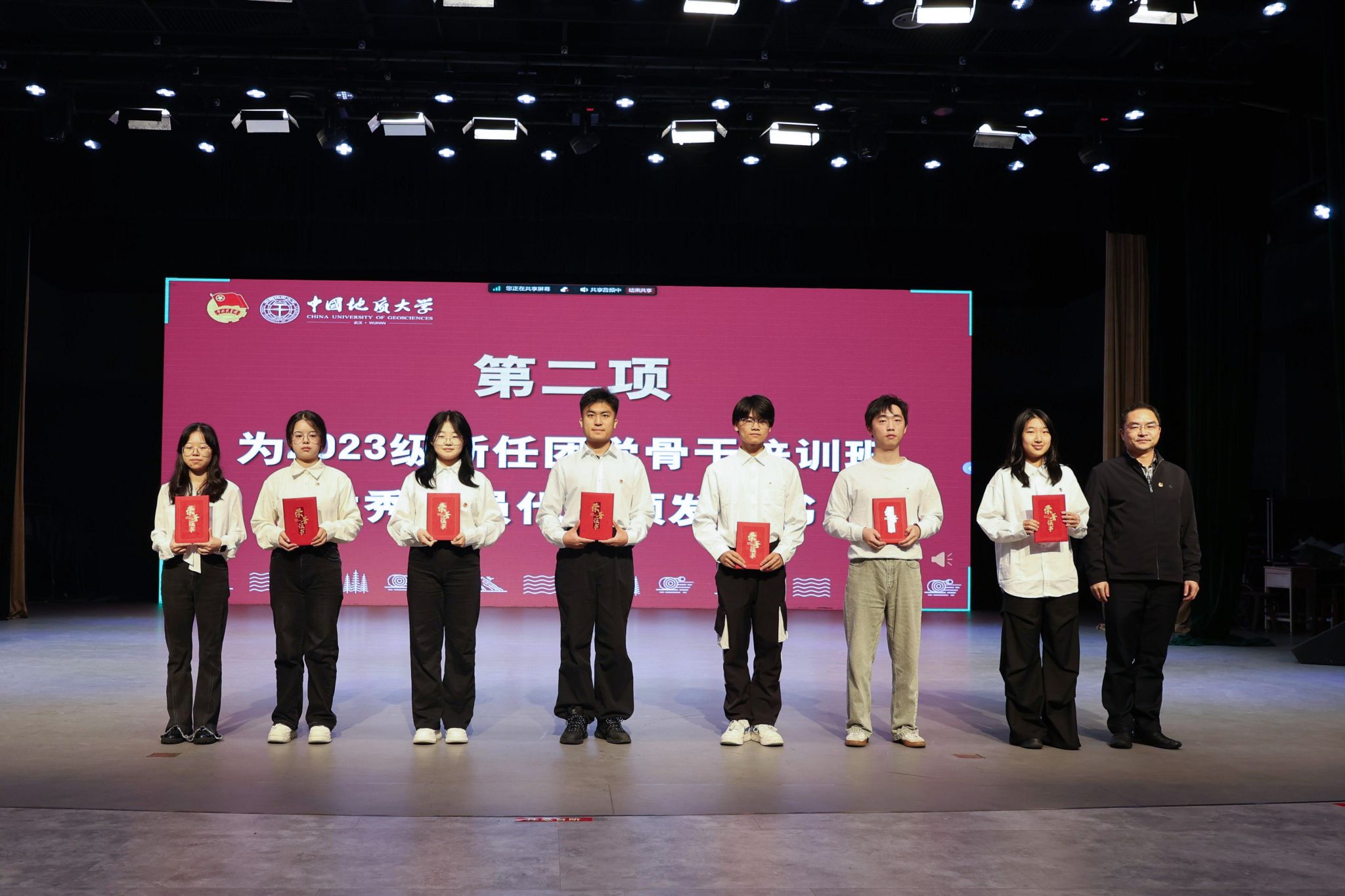 研究生院副院长洪军为2023级新任团学骨干培训班优秀学员代表颁发证书