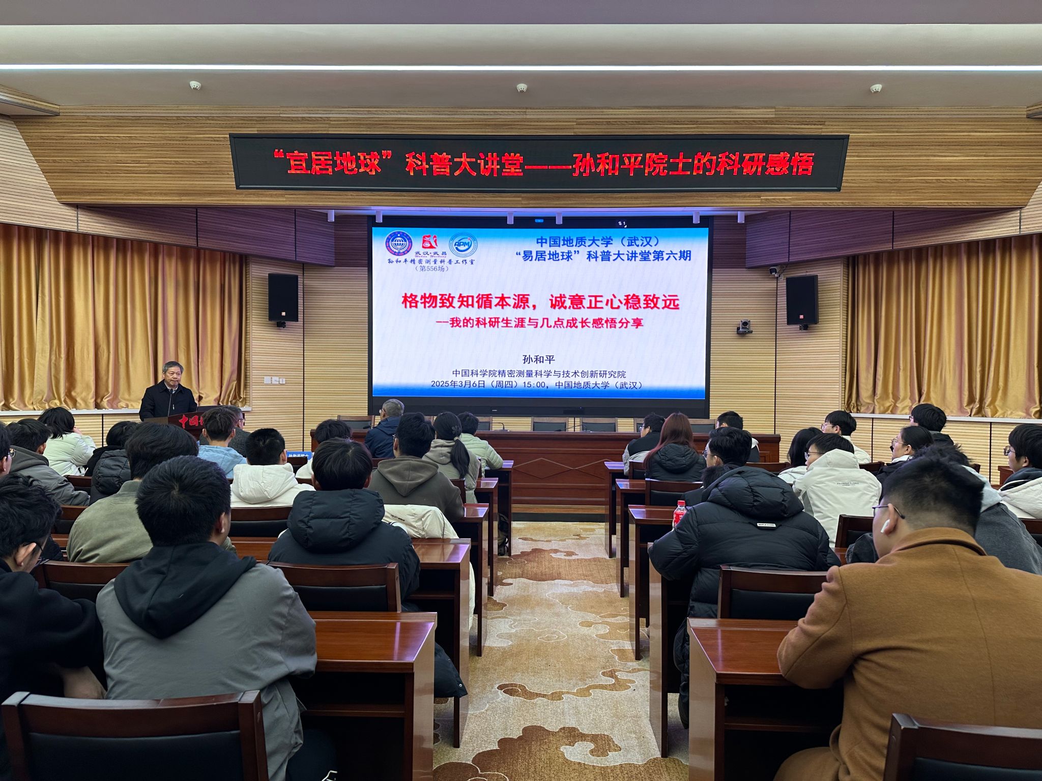 opta足球新闻网讯 (通讯员 殷茵 黄祥嘉)3月6日,应校长李建威、地球物理与空间信息学院教授胡祥云邀请,中国科学院院士、中国科学院精密测量科学与技术创新研究院研究员孙和平,莅临opta足球“宜居地球”科普大讲堂,与师生分享科研生涯的成长感悟。副校长王力哲主持报告会。