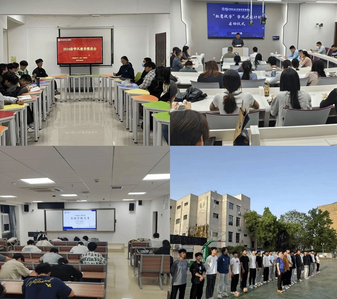 各学院以日常管理为根基,从课堂纪律、日常考勤、学习监督等多维度引导学生潜心向学,激发学生自主学习动力,形成了浓厚学习氛围。环境学院打造“学风建设信息反馈箱”等特色物理空间,发布学风倡议,严格落实课堂考勤与晚自习制度。工程学院组织了2024级本科生高等数学、大学物理等基础学科月考,考后进行学情诊断与查漏补缺,帮助同学们及时调整学习状态。外国语学院秉承“学习是学生第一要务”,开展主题教育抓实管理,强化学生自我约束,引导学生潜心向学。经济管理学院以“红鹰促学”计划为重要抓手,实施大课堂学习委员自查与互查制度,定期通报考勤结果,及时进行教育引导。体育学院坚持“严字当头”促进学生学习习惯养成,规范学生学习行为。