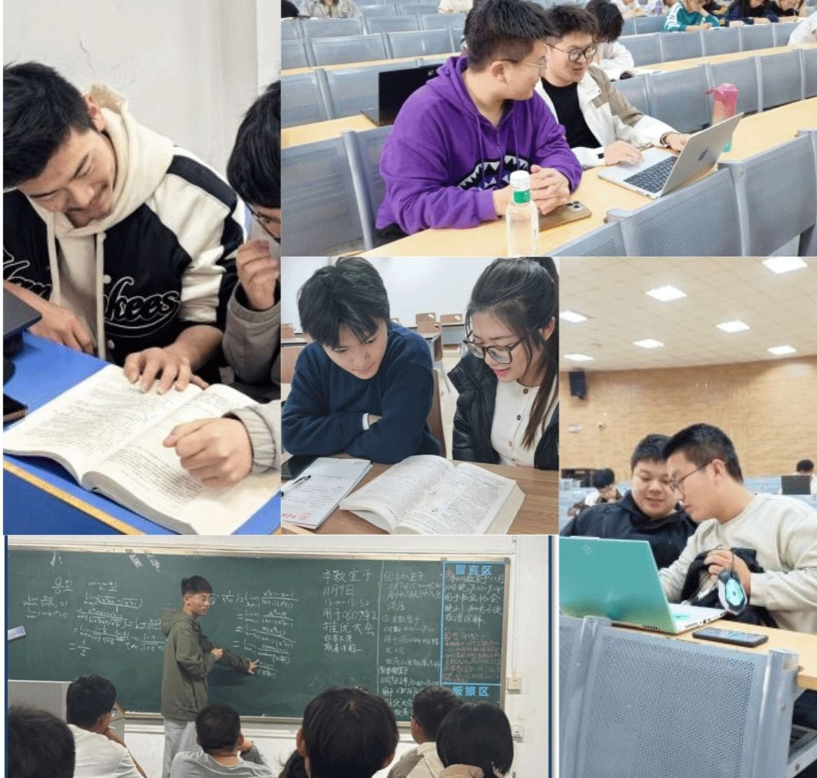 各学院充分发挥优秀学子的示范领航作用,朋辈间的经验传递与情感共鸣有效点燃了学生的学习引擎,在校园内营造出比学赶帮超、共同进步的良好学风。资源学院建立“党员+学困生”结对帮扶模式,精准匹配130余对“一对一或一对二”帮扶关系,每周开展1次面谈辅导。地理与信息工程学院持续开展“地磁计划”,组建学习帮扶志愿服务小组,以身边的典型榜样引领广大同学加强具体规划,明确学习目标,确保专业学习不掉队。艺术与传媒学院面向全体本研学生开展最美笔记风采展、21天学习打卡、艺媒讲坛、优秀学子风采展、结对帮扶(党员帮扶群众、研究生帮扶本科生)等活动,实现朋辈之间互助指导。数学与物理学院不断探索深化“高数大物急救队”为同学们构筑精准帮扶支持体系,通过“科创筑梦”数学建模领航计划助力学生在各项竞赛中取得优异成绩。
