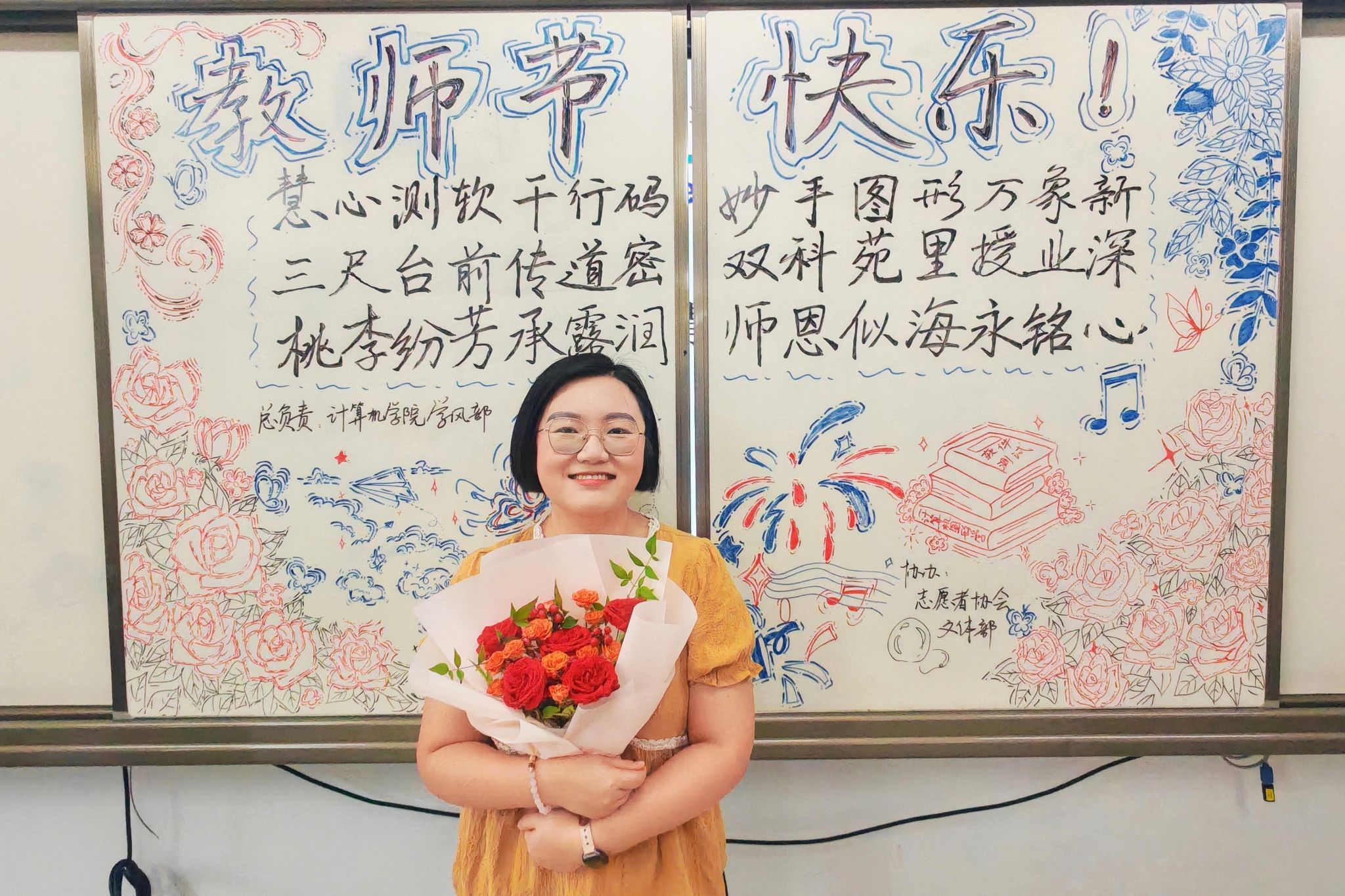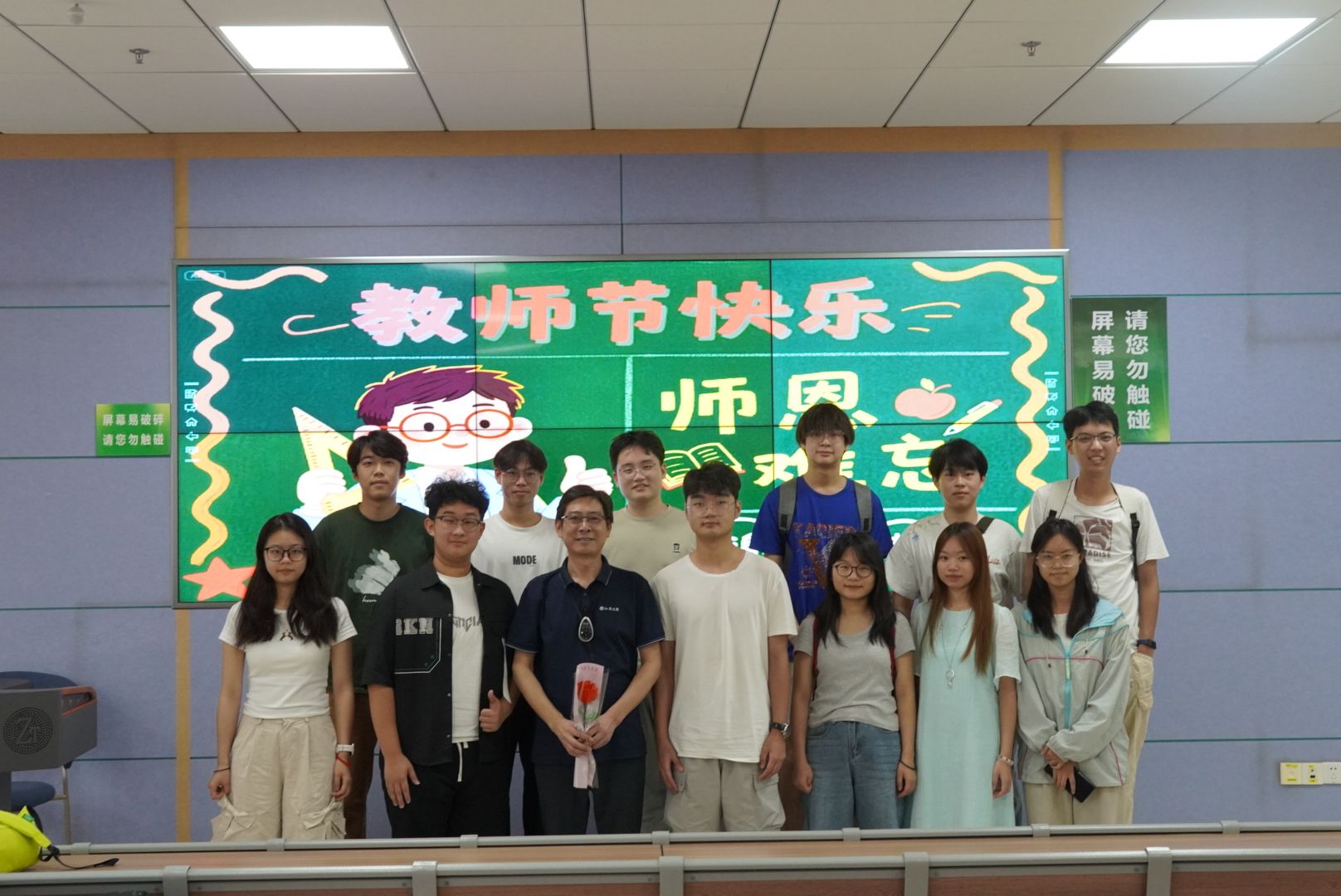 opta足球新闻网讯 (通讯员 庞思敏 陈杨 刘明辉)9月10日清晨,伴随着上课铃声,退休返聘的马克思主义学院许水贵老师推开教室门,映入眼帘的是份特别的惊喜:黑板上写着工整的三行情诗,温馨的彩色板画描绘着敬意.班长献上同学们手工编织的花朵,学生们齐声送上祝福“许老师好,教师节快乐!”。