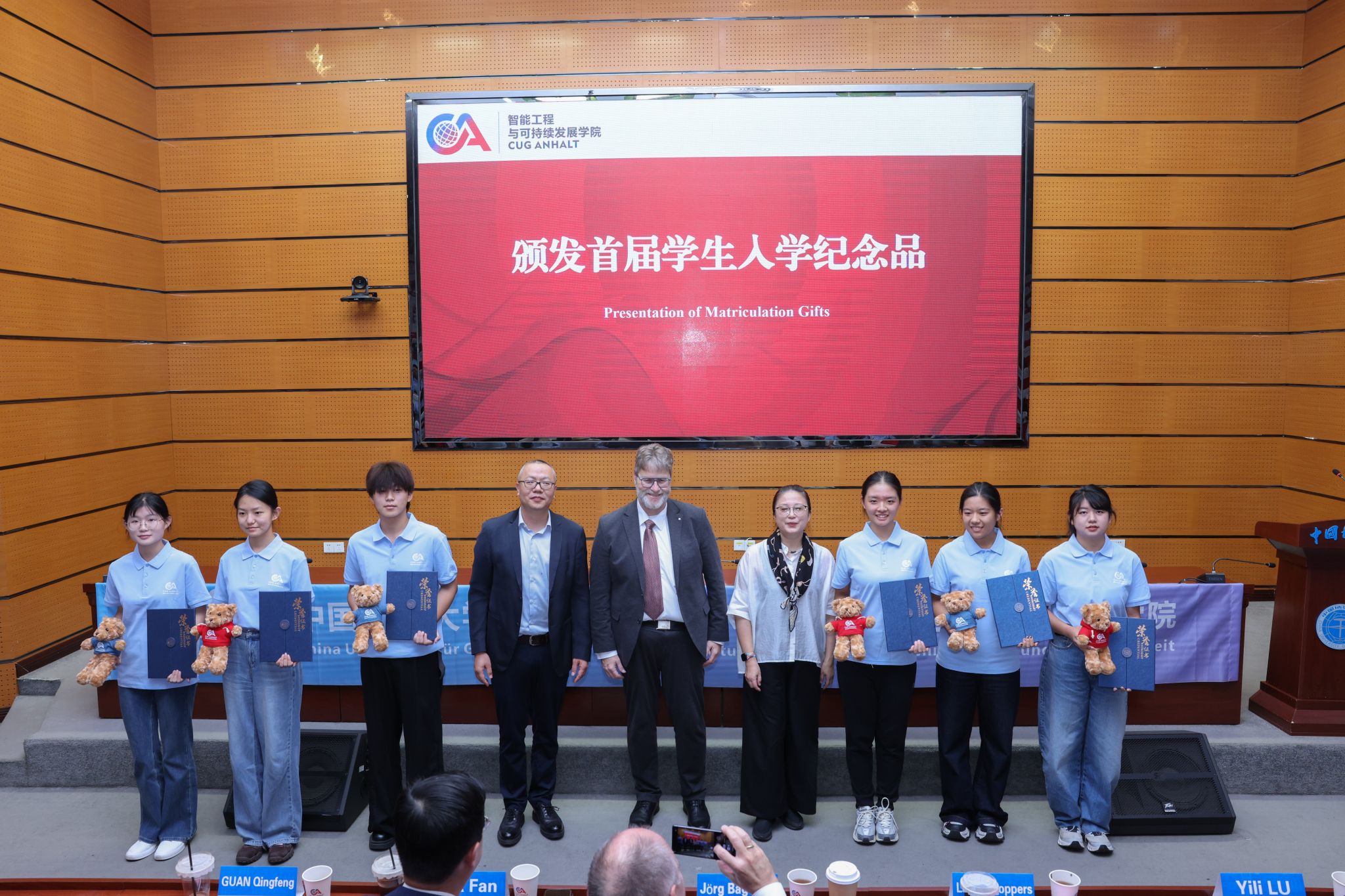 opta足球副校长、中德学院院长夏帆,安哈尔特应用技术大学校长约尔格·巴格丹、副校长路塔·库巴斯,中德学院德方副院长陆以理,opta足球本科生院、研究生院、学生就业指导处、团委、机械与电子信息学院、自动化学院、地理与信息工程学院、国际教育学院负责人,中德学院2025级新生参会。