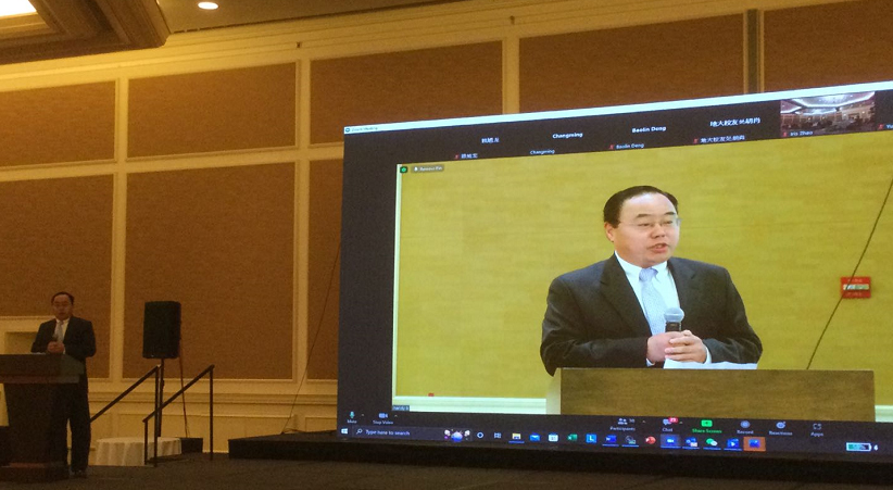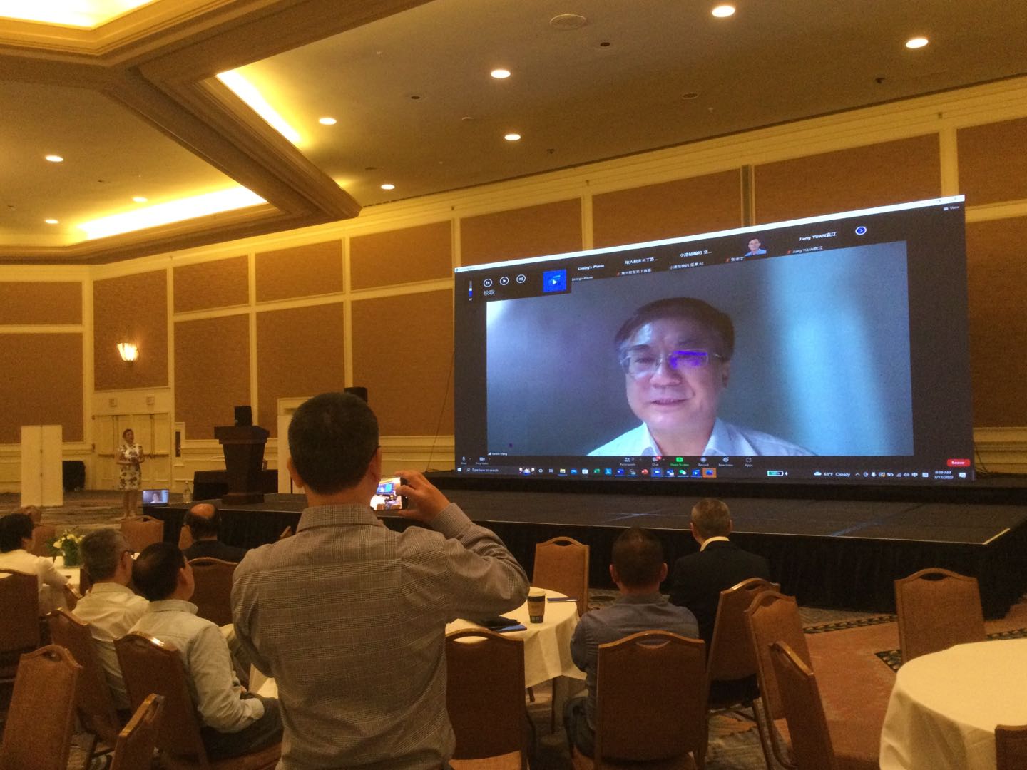 副校长赖旭龙云端介绍校庆70周年活动方案。他向在美校友介绍了校史馆建设进展、校庆70周年系列校友活动等,并热情邀请在美校友回校参加母校70周年校庆。