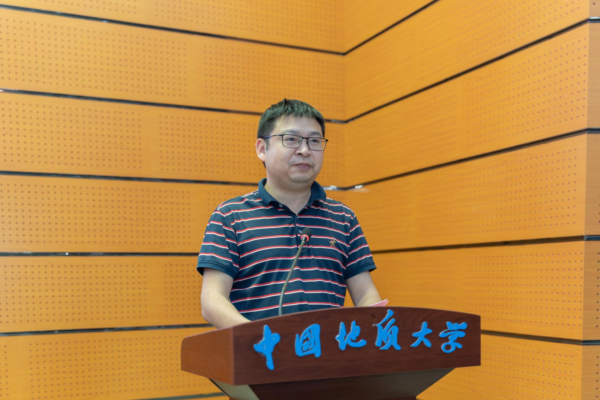 2009届校友大使、武汉工程大学法商学院教授付书科校友发言。他回忆了南望山下九年的求学时光,感谢母校的培养和校友会的支持。他对获聘校友大使的同学们说,要永葆自信赤城,激扬爱校之情;矢志担当奋斗,砥砺荣校之志;当好桥梁纽带,凝聚兴校之力。