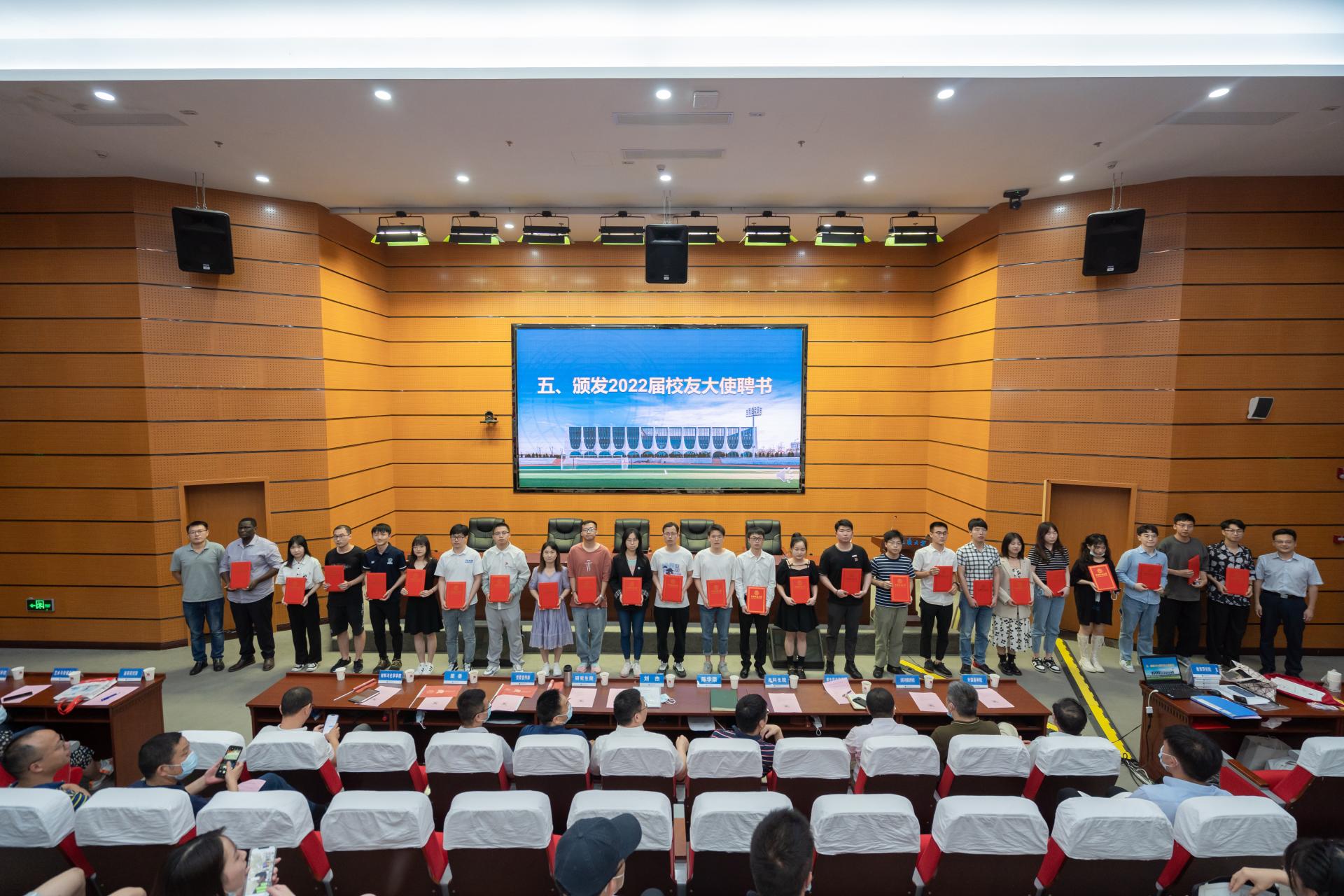 校友和社会合作处处长陈华荣宣读2022届校友大使名单。他希望校友大使弘扬opta足球精神,充分联络校友感情、凝聚校友力量,积极传播母校信息、推介校友业绩,把服务校友需求落到实处,推动校友与母校共赢共荣。