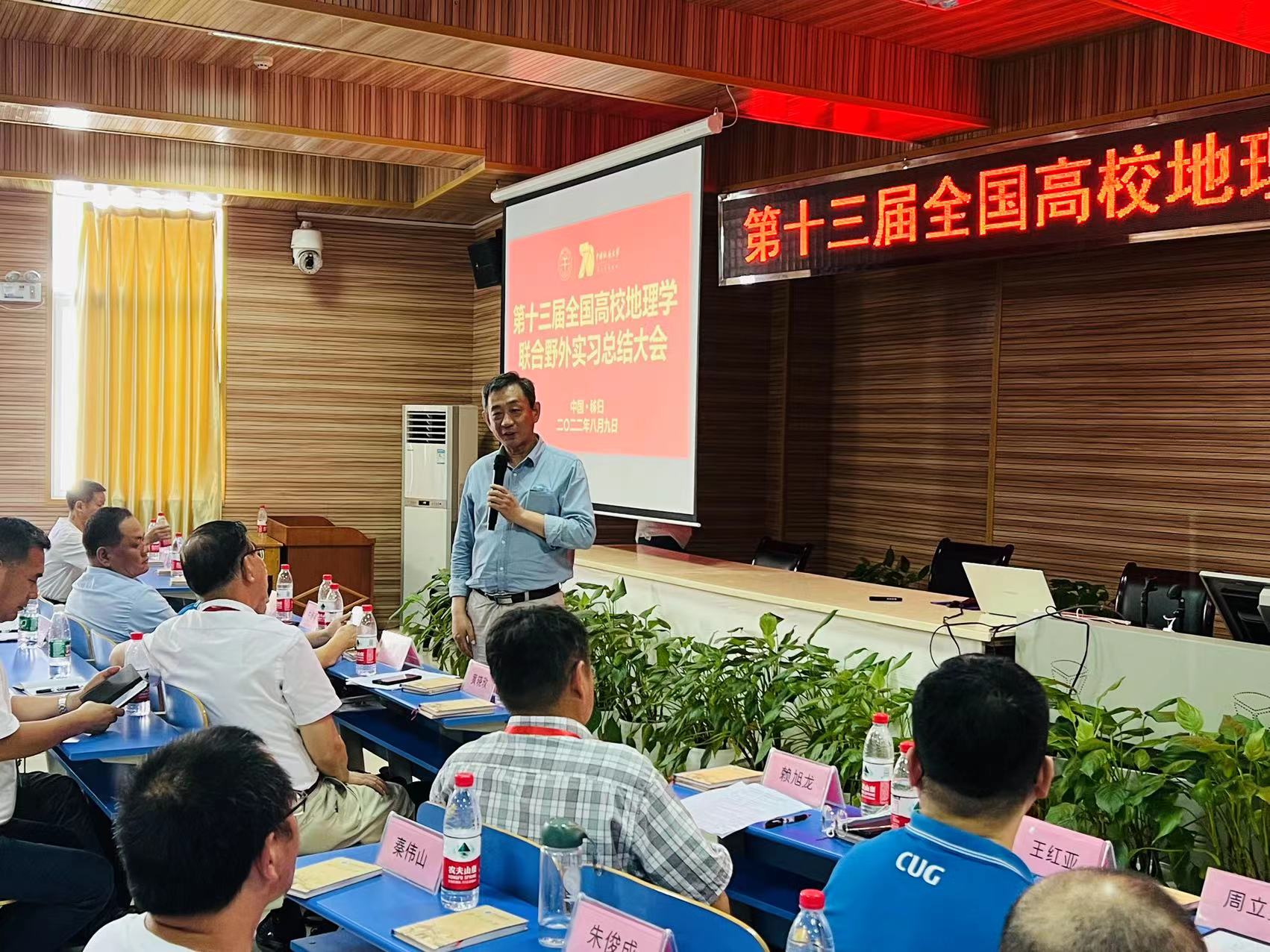 郑祥民对实习总结点评。他代表教育部高等学校地理科学类专业教学指导委员会、全国高校地理学联合野外实习联盟对承办本次联合野外实习的组织单位表示感谢。他指出,地理学联合野外实习的目的,是为国家培养基础知识扎实、业务能力精湛、具有家国情怀和奉献精神的地理人才。他鼓励同学们要围绕国家重大战略问题,用地理学专业知识服务于国家建设。