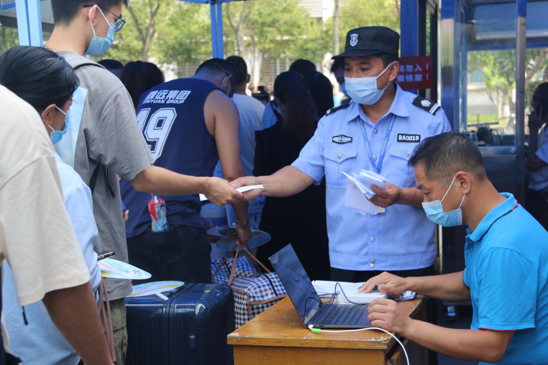 按照学校秋季开学疫情防控的总体要求,安全保卫部细化完善开学疫情防控和校园安全稳定应急预案,严格落实各项防疫措施,将防疫工作贯穿于新生入学报到过程始终,坚决把好入学疫情防控安全“第一关”。学生报到期间,安保部所有人员提前进入各自执勤岗位,全程值守。在学校入口处依次完成“身份验证-体温检测—行程码查验—24小时核酸检测证明”等流程,在志愿者的协助下,快速到各学院服务点报到。