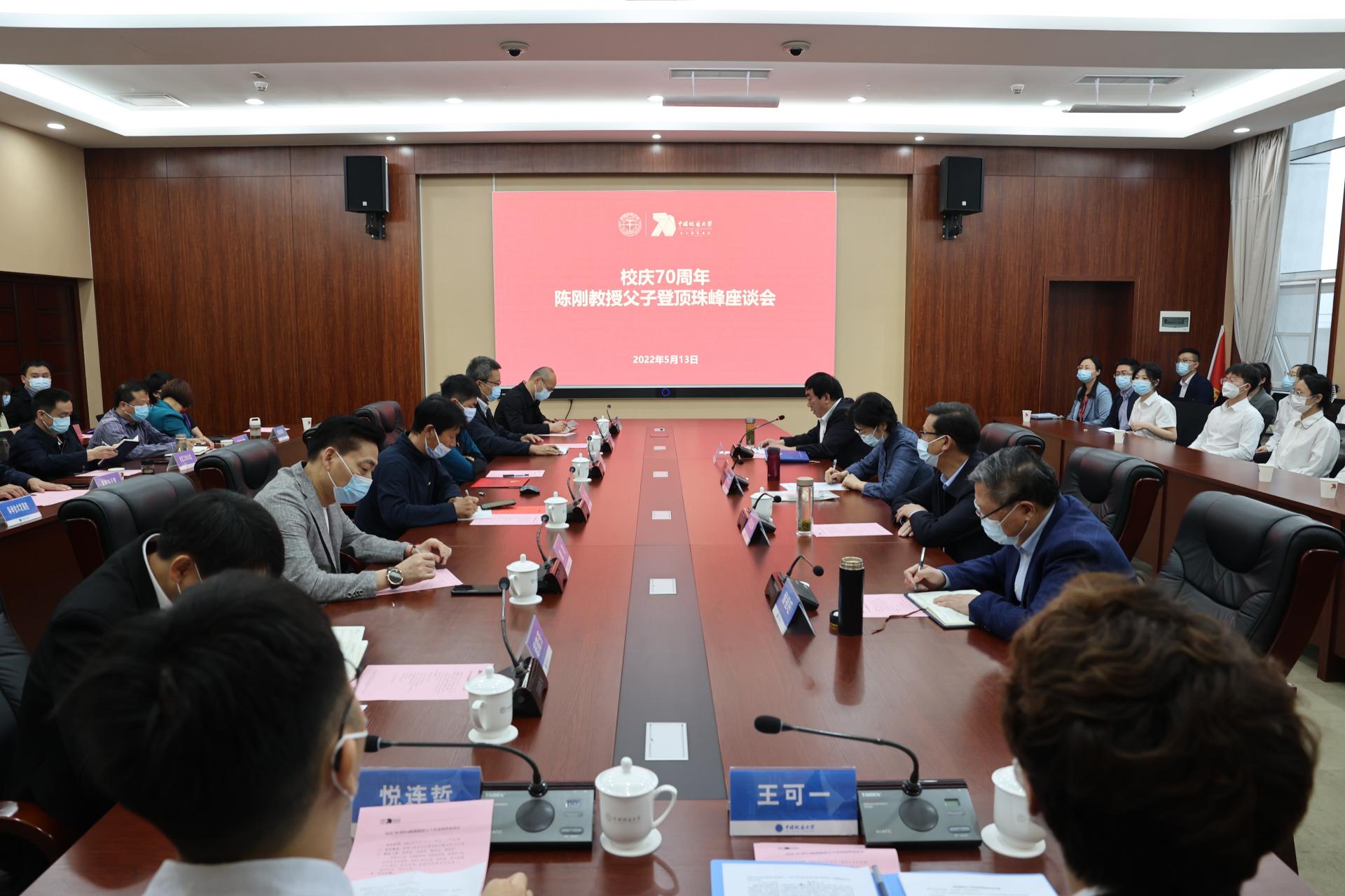 赖旭龙主持会议。他介绍,海洋学院陈刚教授父子成功登顶8848.86米的珠穆朗玛峰,父子携手征服世界之巅,进行了大量标本样品的采集。他指出,陈刚教授父子登顶珠峰的壮举,为学校迎接党的二十大胜利召开,庆祝中国共青团成立100周年增添光彩,为学校70周年校庆献上了一份厚礼。