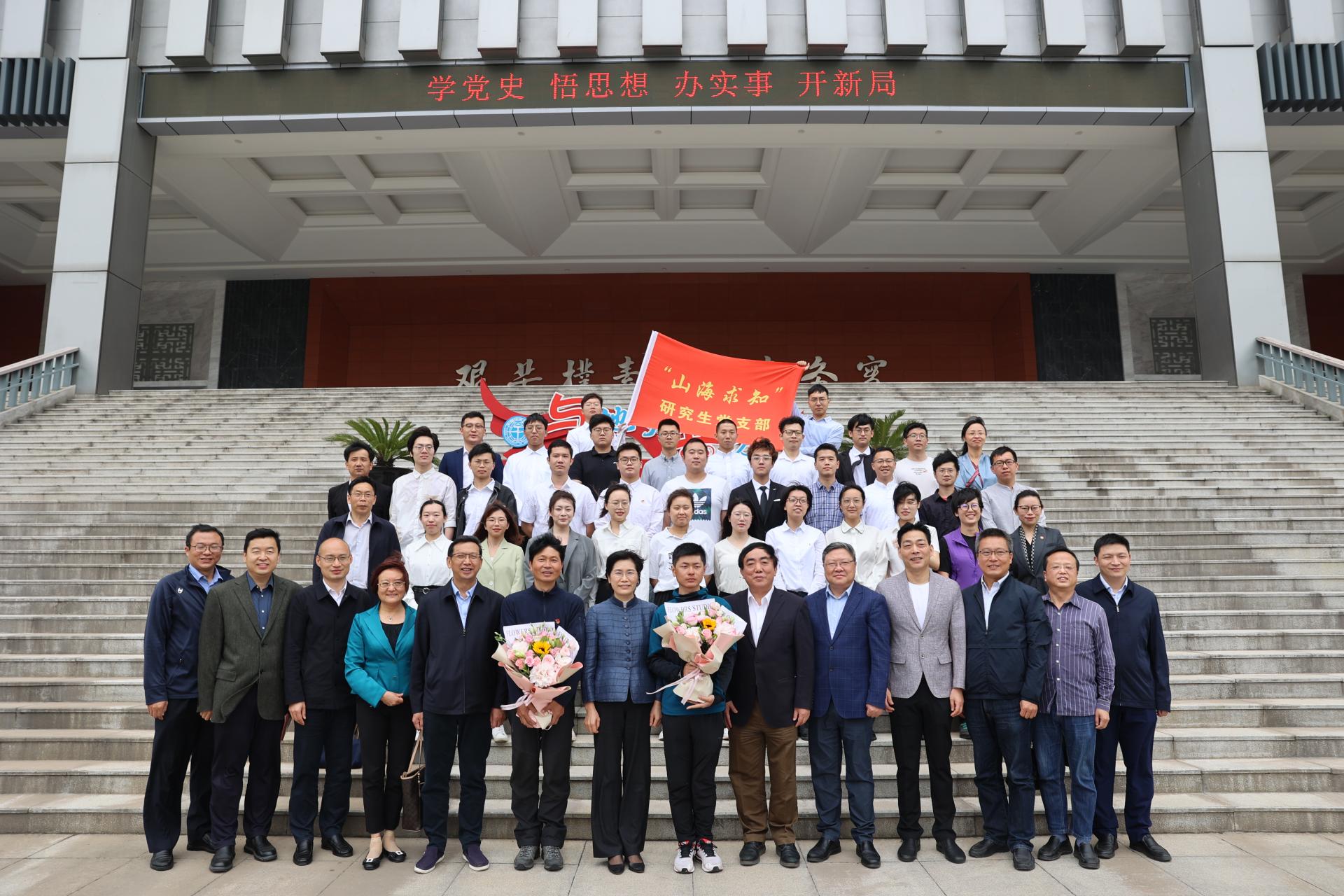 成金华为“山海求知”研究生党支部成立授旗。该研究生党支部是由陈刚教授牵头成立的纵向设置的研究生党支部,党支部将依托陈刚教授科研团队力量,夯实基层党支部建设,打造坚强战斗堡垒,促进党支部党建和科研工作的深度融合,扎实推进党建示范和质量创优工作。