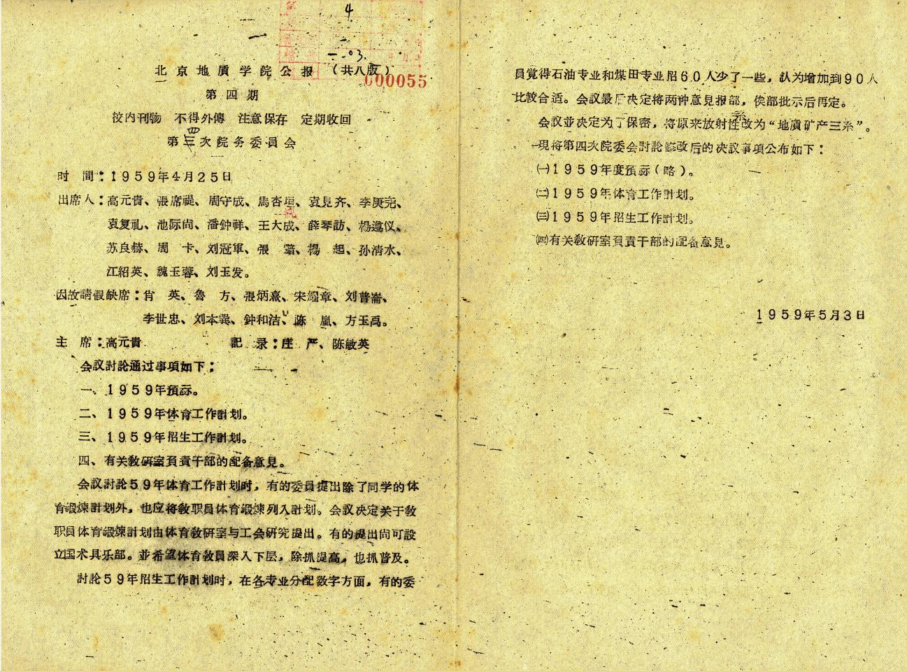 1959年,北京地质学院第四次院务委员会会议决定,将原来放射性系改为“地质矿产三系”